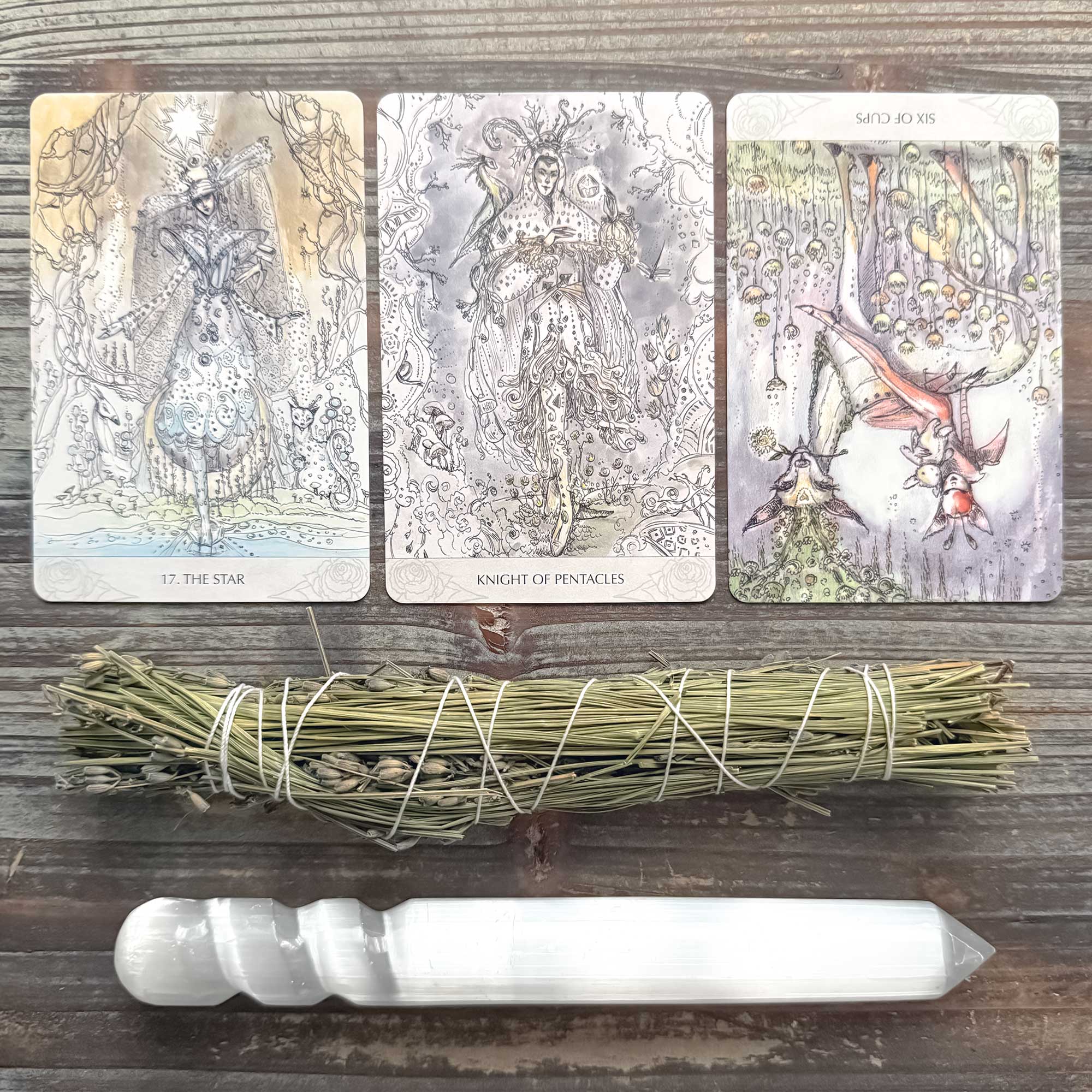 Seven of Pentacles and Hope – Patience and hope don’t often walk hand in hand, but the latter has the ability to bolster the former. Hope isn’t always easy to grasp hold of, though. It’s slippery and can diminish over time if not fed with persistence and a bit of positivity now and then. Don’t let your hope starve when the journey feels like it’s taking far too long.