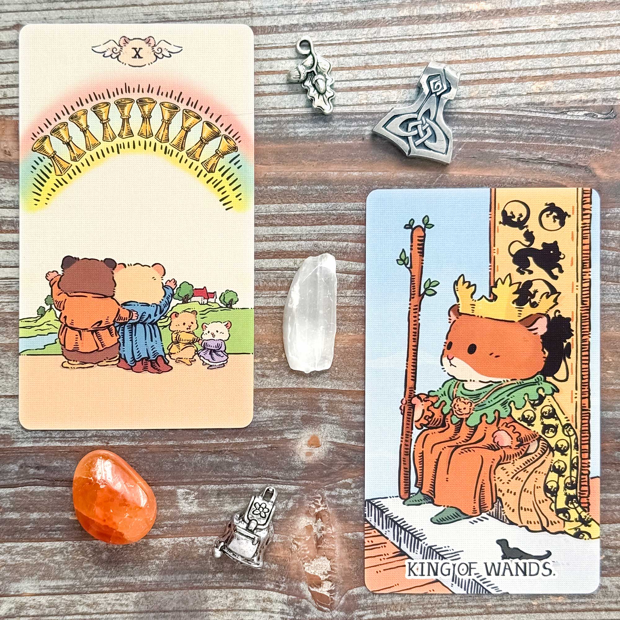 Tarot Reading, Augur Charm Reading, ShuShu Tarot's Ten of Cups and King of WandsHow can I feel more in tune with myself?