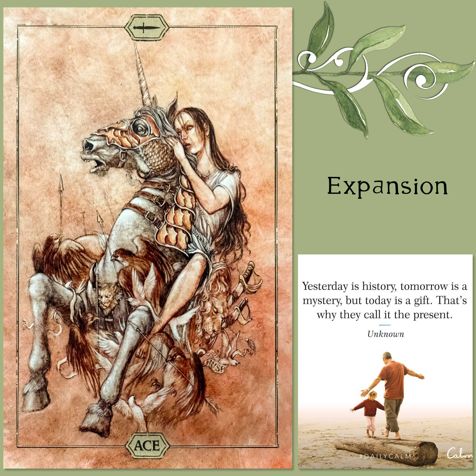 Today’s draw is the Ace of Swords, which is traditionally a representation of the seed of new beginnings in the area of one’s thoughts, intellect, education, logic and reason, ambition, or communication.