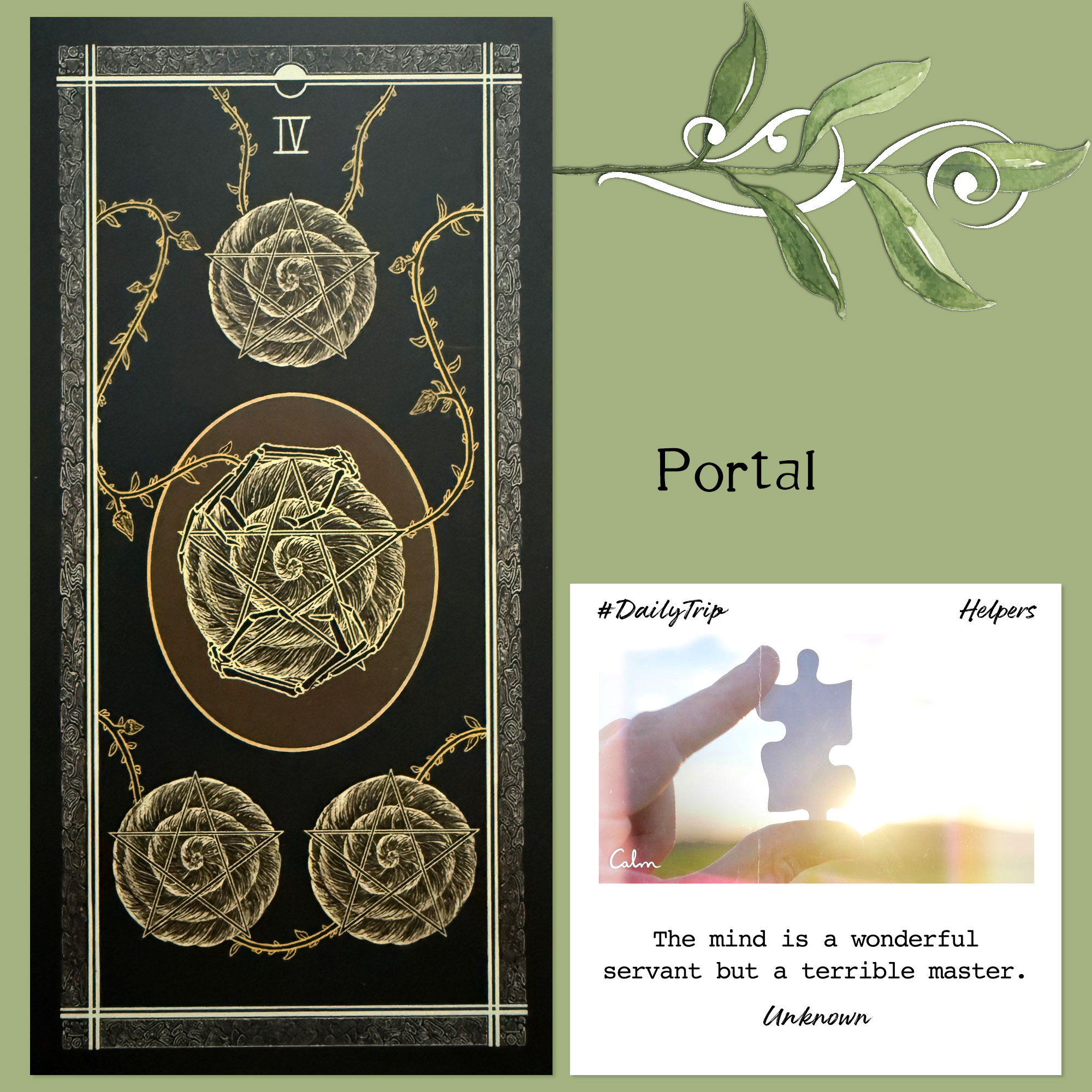 Today’s message is a reminder that fear causes healthy behaviors to turn into unhealthy ones. The message in today’s Four of Pentacles combined with the “Portal” prompt is an encouragement towards self awareness, and knowing which side of the threshold you stand on… and to begin exploring how to get back to the healthy side of things if you’ve stepped over the edge to the other side.