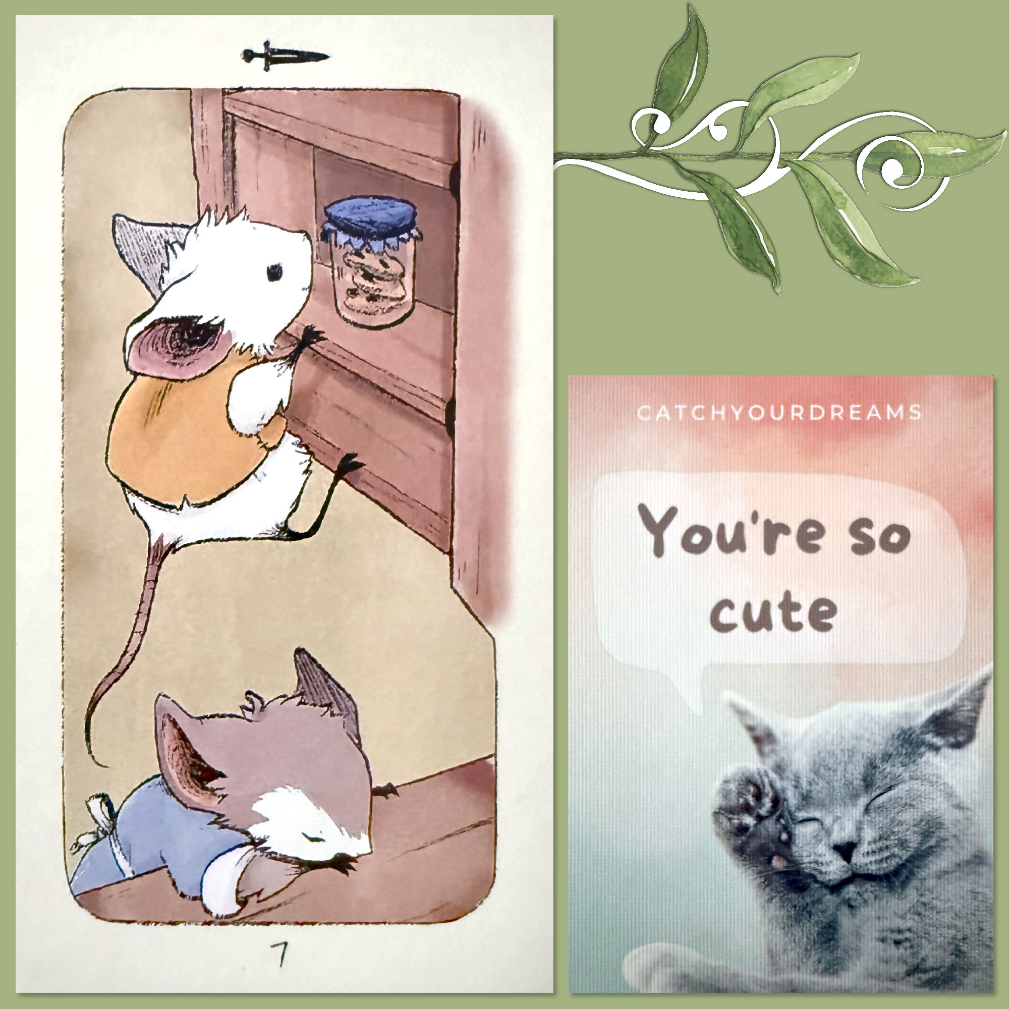 Mimit Mini Mice Tarot - Seven of Swords and Cats Against Anxiety CardsDaily Mental Health Prompt: Seek a positive message to carry with you throughout the day and offer perspective.