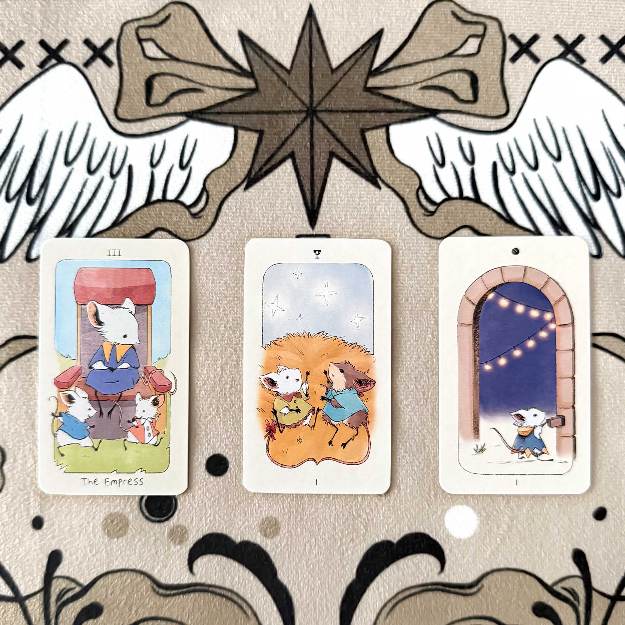 Tarot Reading with the Mimit Mini Mice TarotReading Summary: By turning over a new leaf (both Aces) in how you tend to (The Empress) your health and well-being (Ace of Pentacles and Ace of Cups).