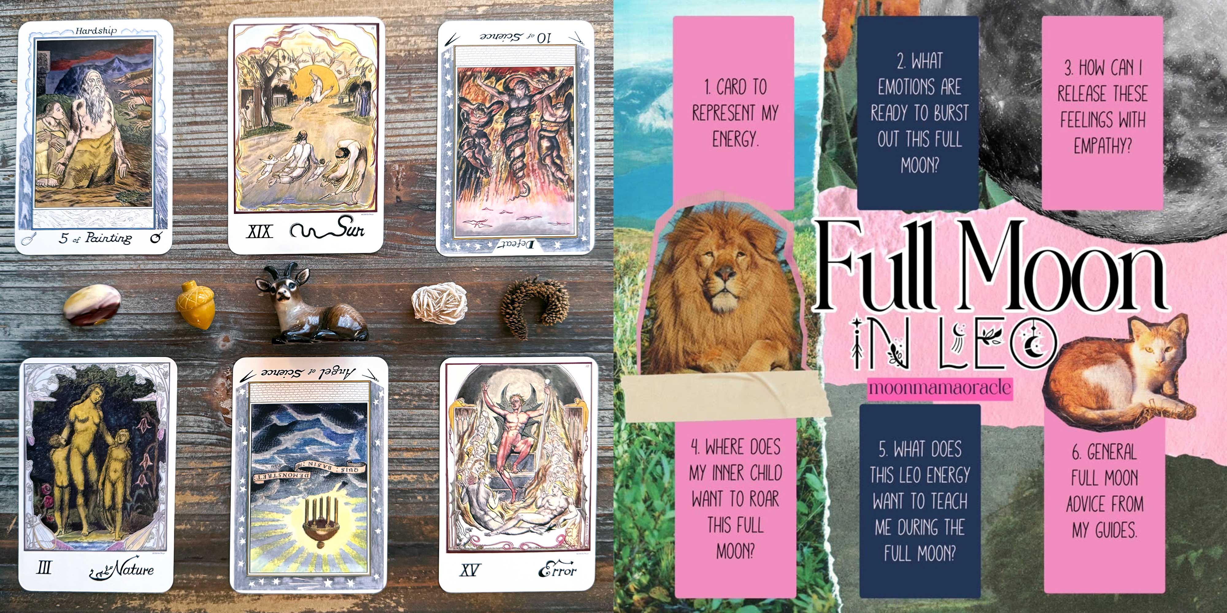 Tomorrow is the full moon, and like all new moons and full moons, I did a spread aligned to the moon’s current themes as a part of my recognition of the moon’s cycle and influences upon us. Todayβs spread is courtesy of @moonmamaoracle