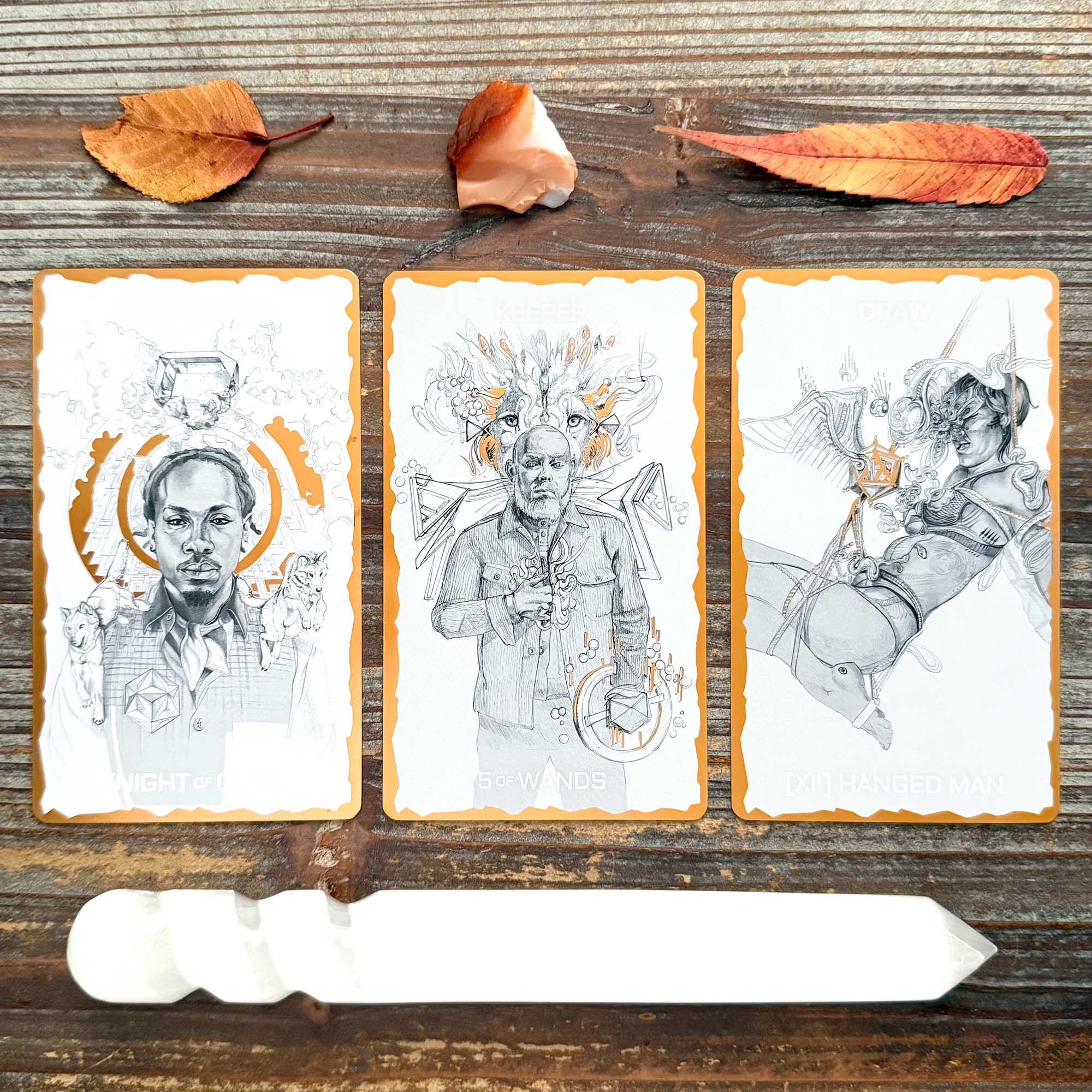 Reading Summary: Actively going after those things that make you happy (Knight of Cups), even against the opposition or opinions of others (Five of Wands), instead of holding back and/or procrastinating (Hanged Man).
