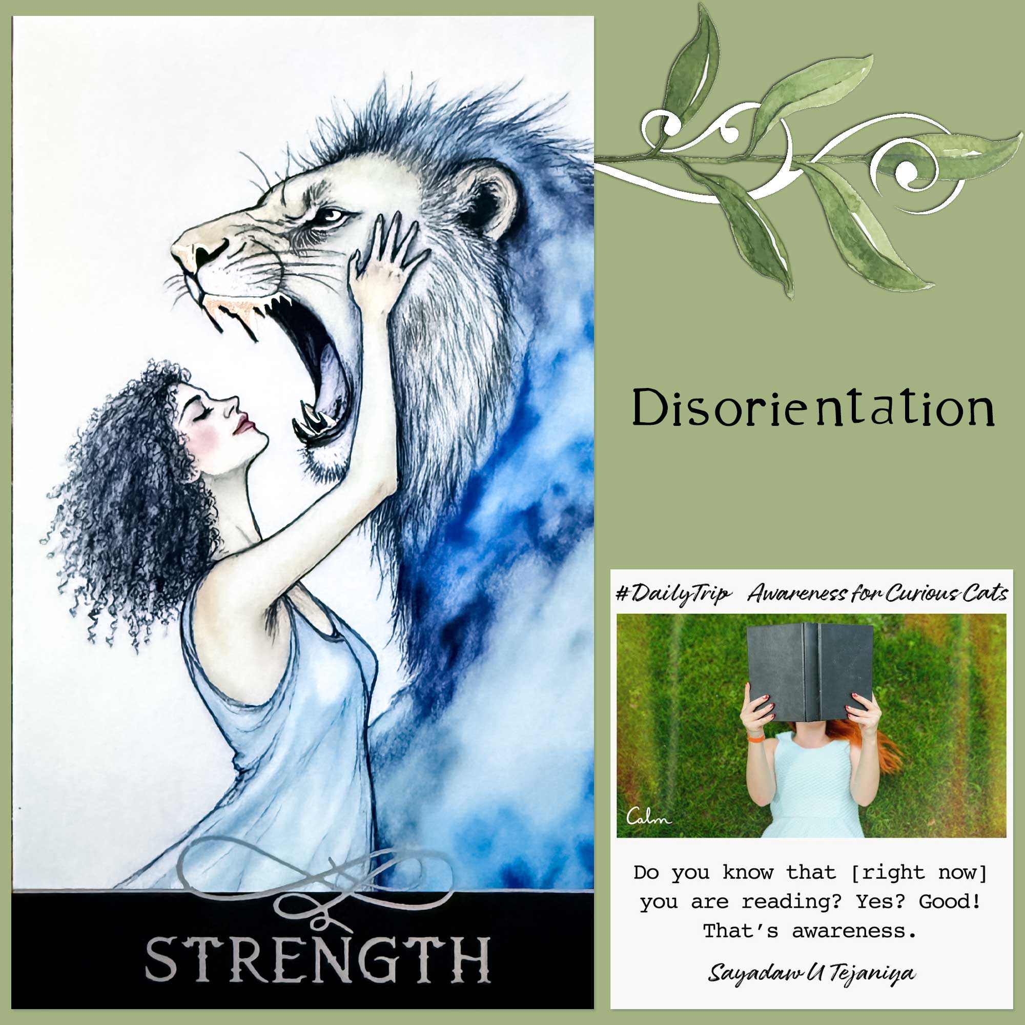 The message in today’s Strength card and “disorientation” prompt is a reminder that emotions are fleeting and not dependable for gauging a situation or what you should do in reaction. This messages encourages a pause and a deep breath first. It’s not that you shouldn’t feel your feelings, only that you want to make sure they aren’t pushing you into reacting before you have a moment to process and think.