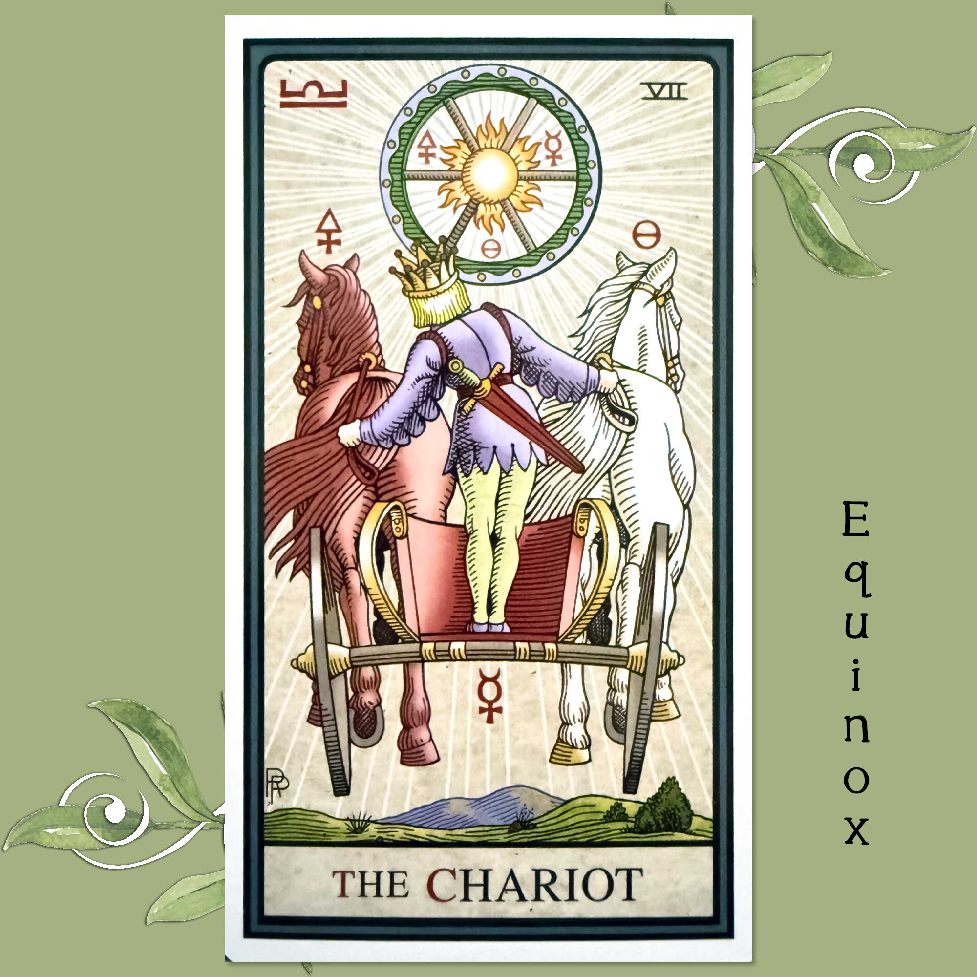 The message in today’s Chariot card combined with the “Equinox” spread suggests that instead of go, go, go all the time, we try stepping down and stepping aside, so we can see things from a better angle now and then. That involves slowing down and letting go of the reigns. Otherwise… you’re going to miss something important sooner or later.