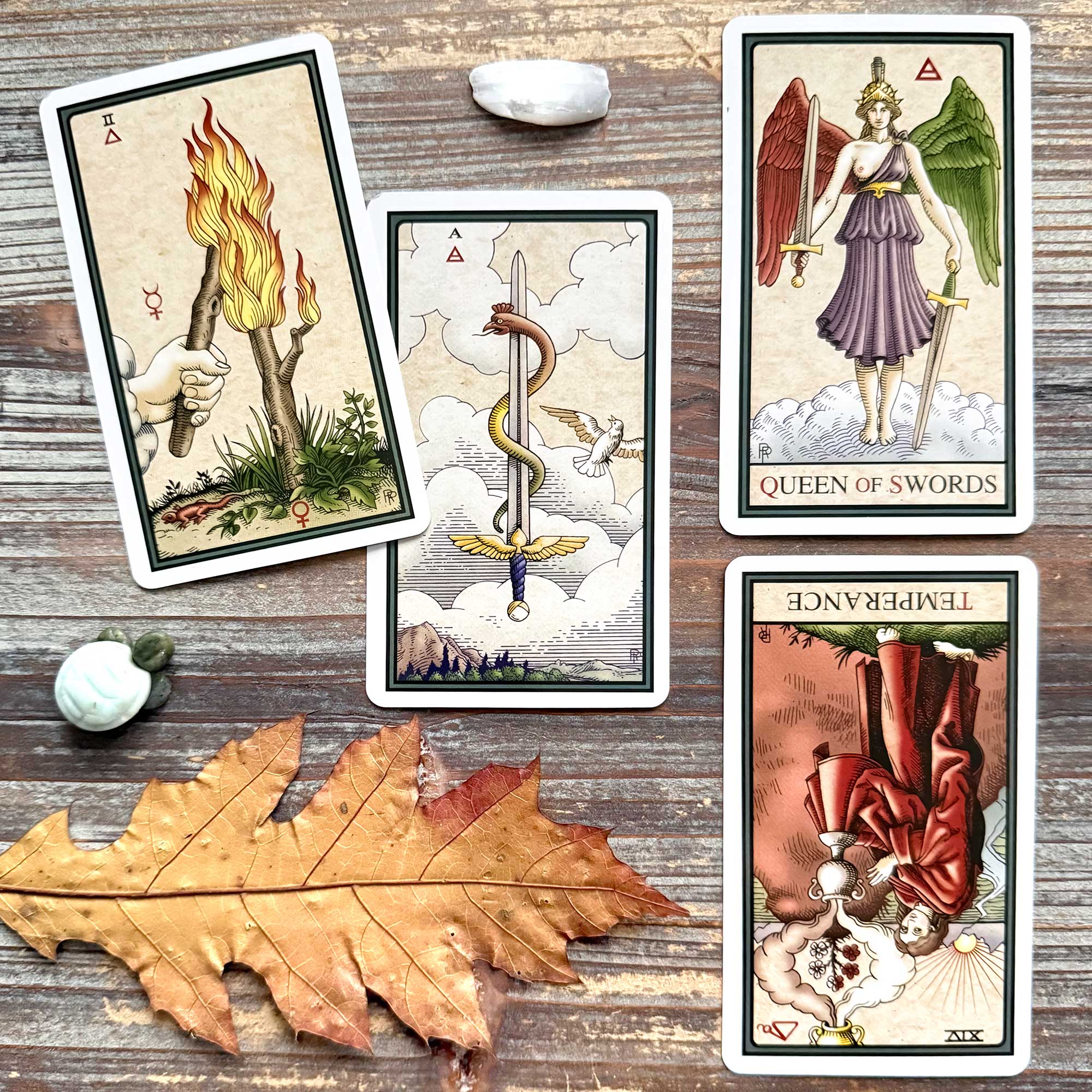 Happiness then becomes something that drives us (Queen of Swords) and can supersede other life goals if the desire for it is left unchecked (Temperance).