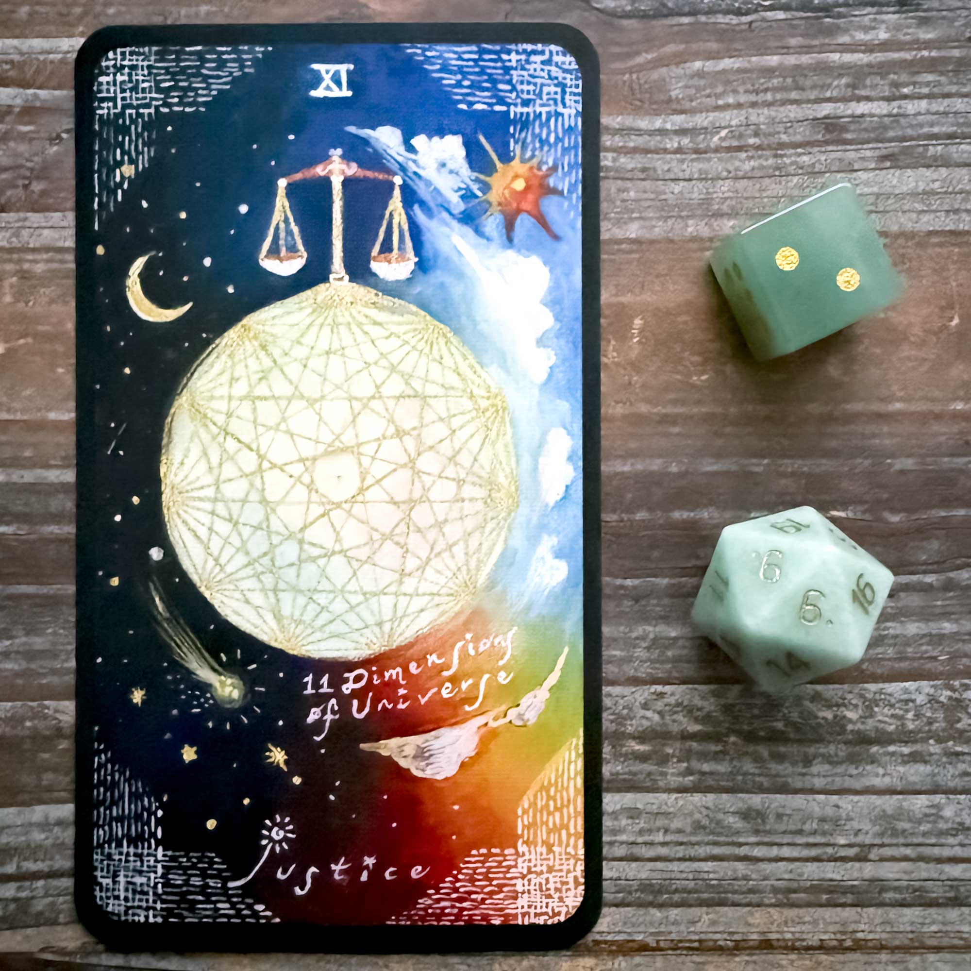 The Justice card is about balance. Sometimes that translates into cause and effect, but often it also speaks of the world’s need for balance. That’s what creates cause and effect in the first place, after all.