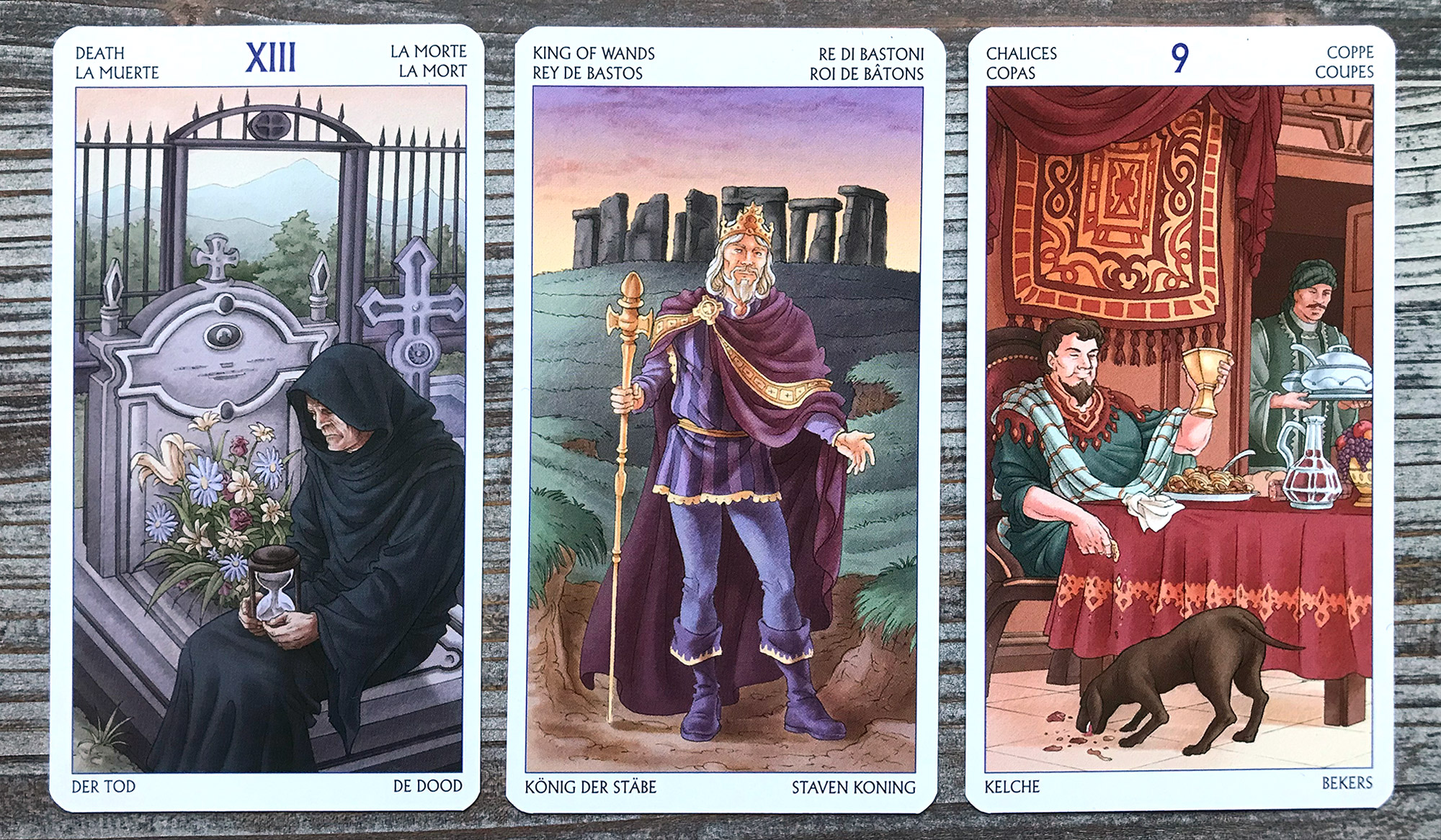 Reading Summary: Learning about different traditions and adopting what has felt right for me (Seven of Swords). Hardships along the way that have taught me strength (Five of Pentacles). Following my gut concerning what is right for me… and what isn’t (Eight of Cups).