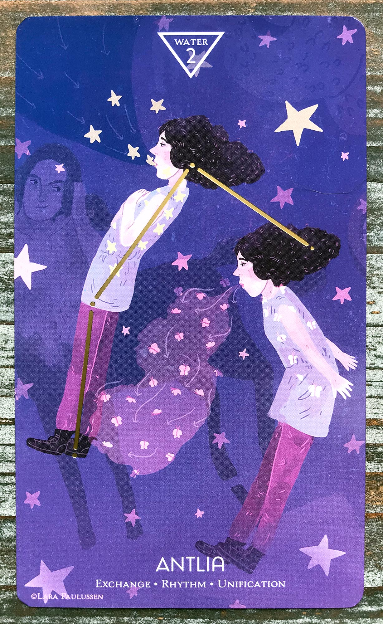 I just have to say… I love this card’s imagery. I love the Satyr helping the little lamb to get out of the tree’s branches. It shows both gentleness and kinship, but also strength and surety.