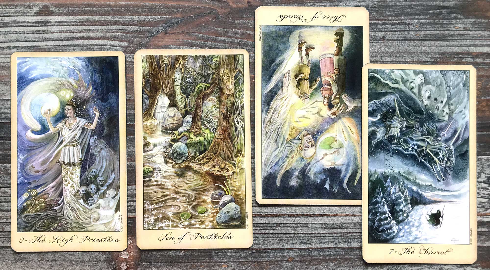 This reading leaned deeply into the imagery of the cards and had very little to do with the actual card names. I didn’t even realize the card names (or that they might fit the reading) until after I’d already taken down my summary notes.