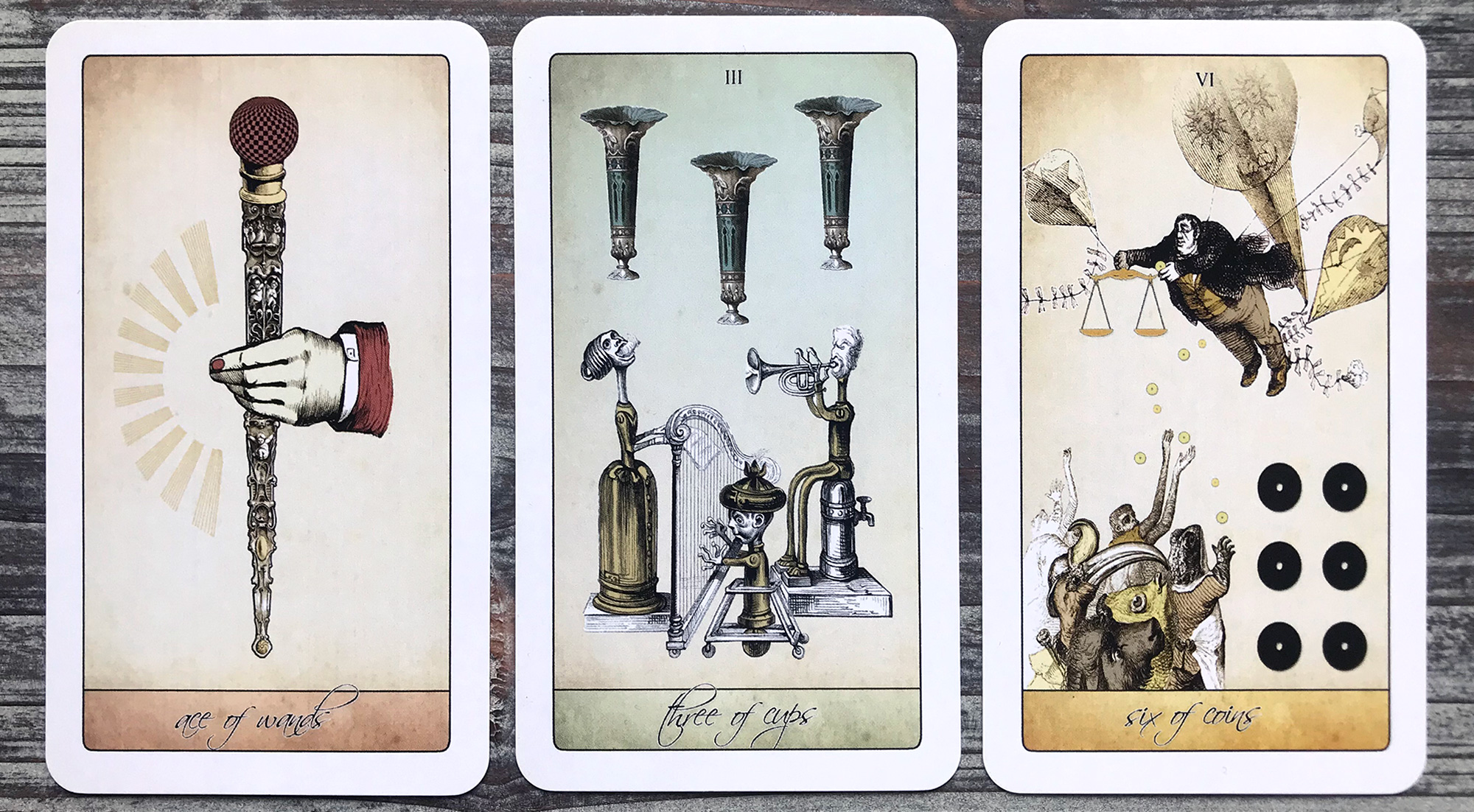 Reading Summary: I’m hurting myself (Three of Scrolls) by focusing too hard on my more material goals (Ten of Stones) and the new emotions I’ve been experiencing (Ace of Mirrors) are spurring a gradual change (Death).