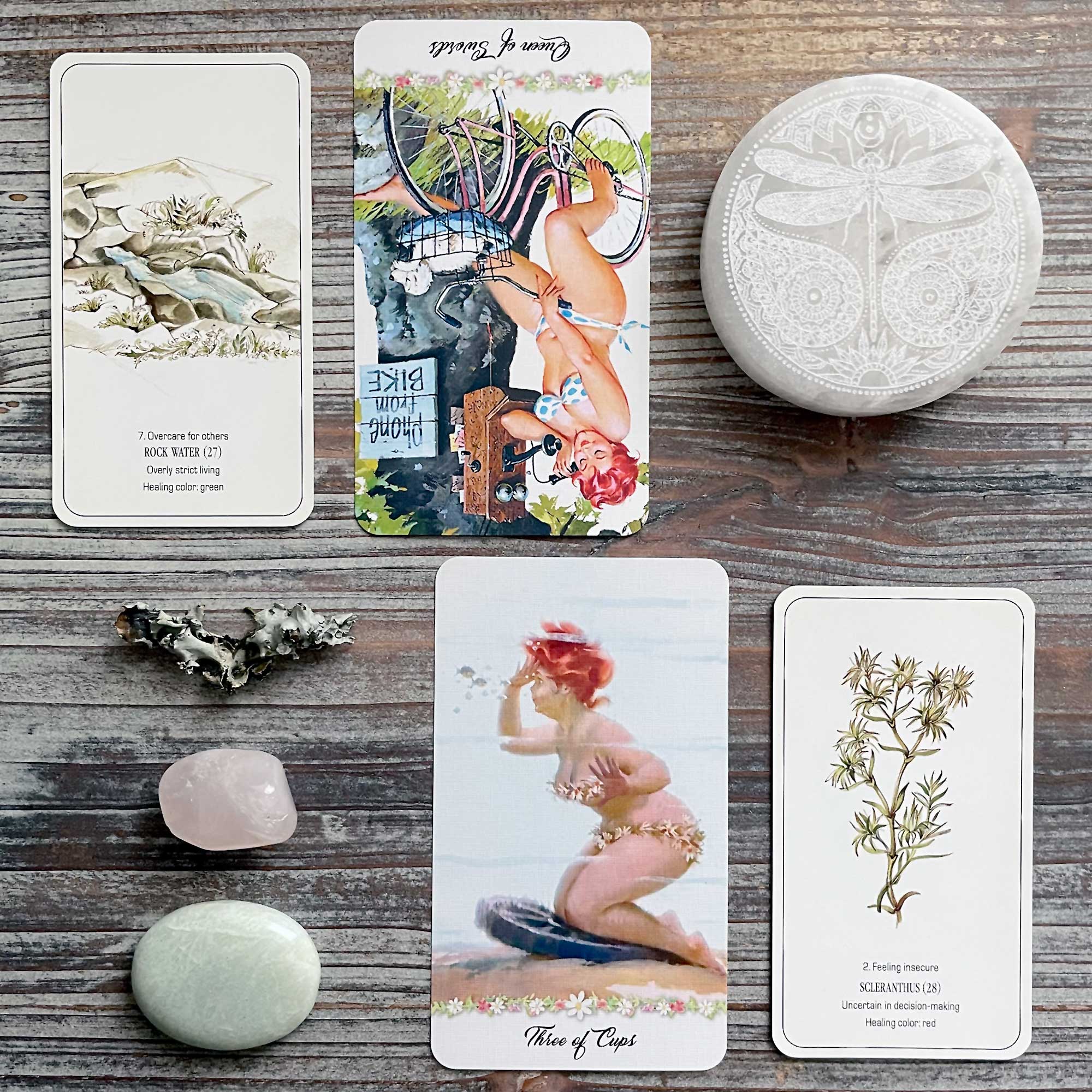 I can’t tell you how many people have given me strange looks and questions about it, considering it’s a deck filled with a lovely plush red-haired woman primarily dressed in bikinis throughout the cards. And yet? It’s one of my absolutely favorite summer decks.