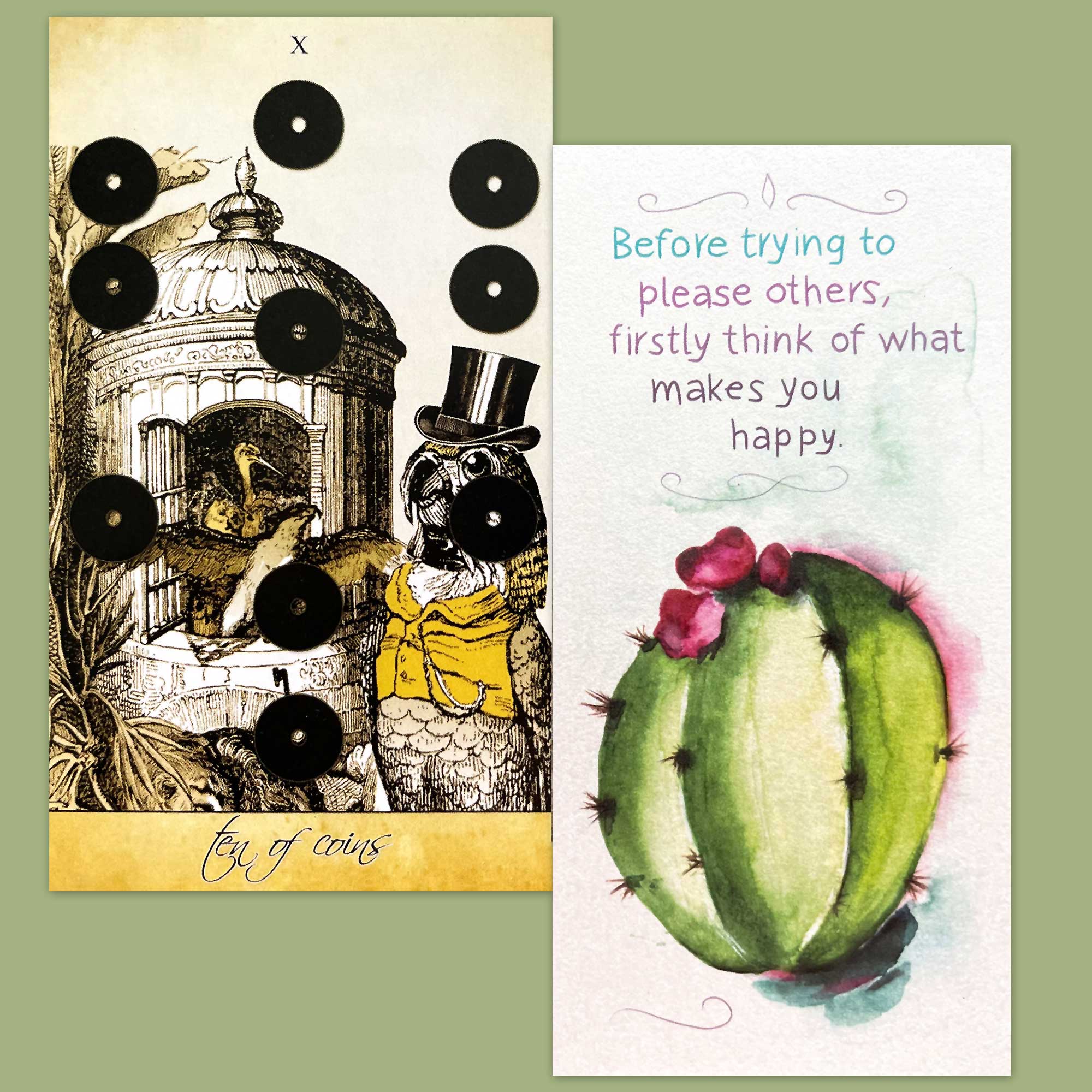 Serenity helps in choosing healthier ways of viewing yourself (Judgement) and the choices you make (Seven of Shells) in those moments when you backslide into old bad habits (Ten of Tridents).