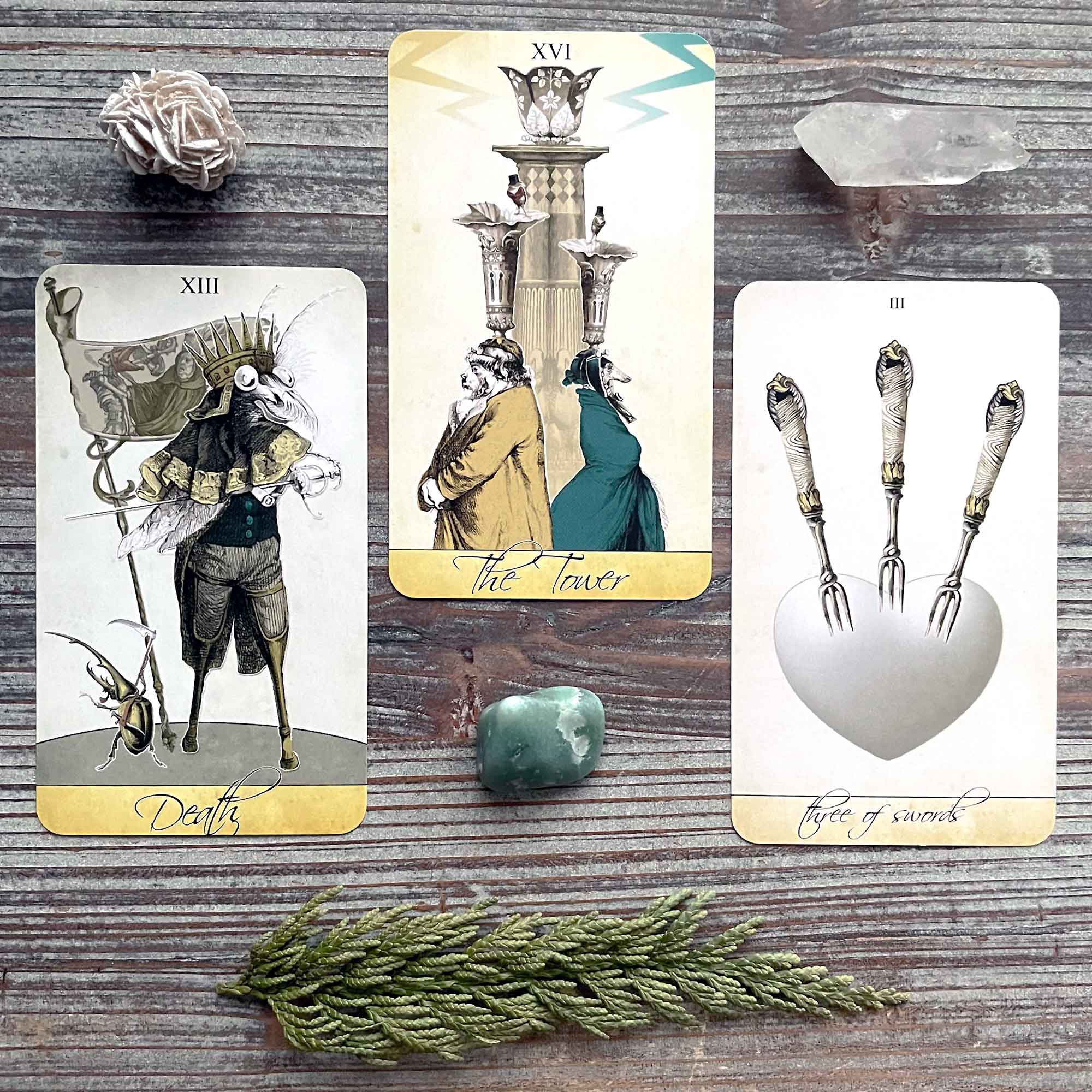 Reading Summary: Focus on the gradual changes you’ve been working on (Death) and building the new system that will work better for you (The Tower) then was there before (Three of Swords).