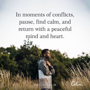 Today’s meditation was eleven minutes long, and focused on how to deescalate conflict by taking a moment of pause to allow the emotions and bodies to calm down. During the guided meditation, I learned that it takes 20 minutes for adrenaline and other stress reactions to leave the body, which was something I didn’t know.