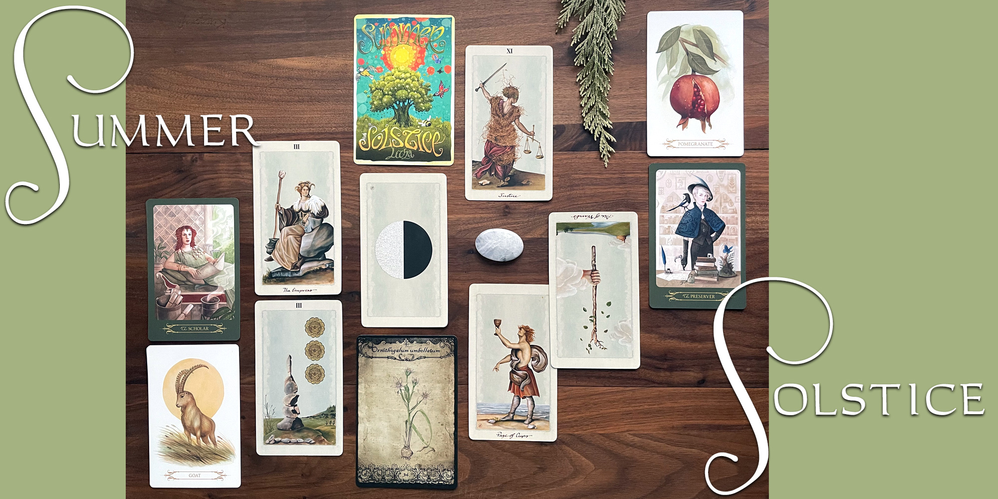 Like with new moons and full moons, I usually do a spread to check in with myself and give myself some direction for the next couple of months on each solstice, equinox, and other Sabbats. This spread is an adaptation of my Self Care Saturday spread, so there are sure to be some similarities in how it is read. The focus of this spread, though, is not about Self Care, but rather about progress and my path. The time period is also longer, reaching through the next handful of weeks until the celebration of the First Harvest (aka, Lughnasadh, Lammas, Lughnasa, Lugh) on August 1st.