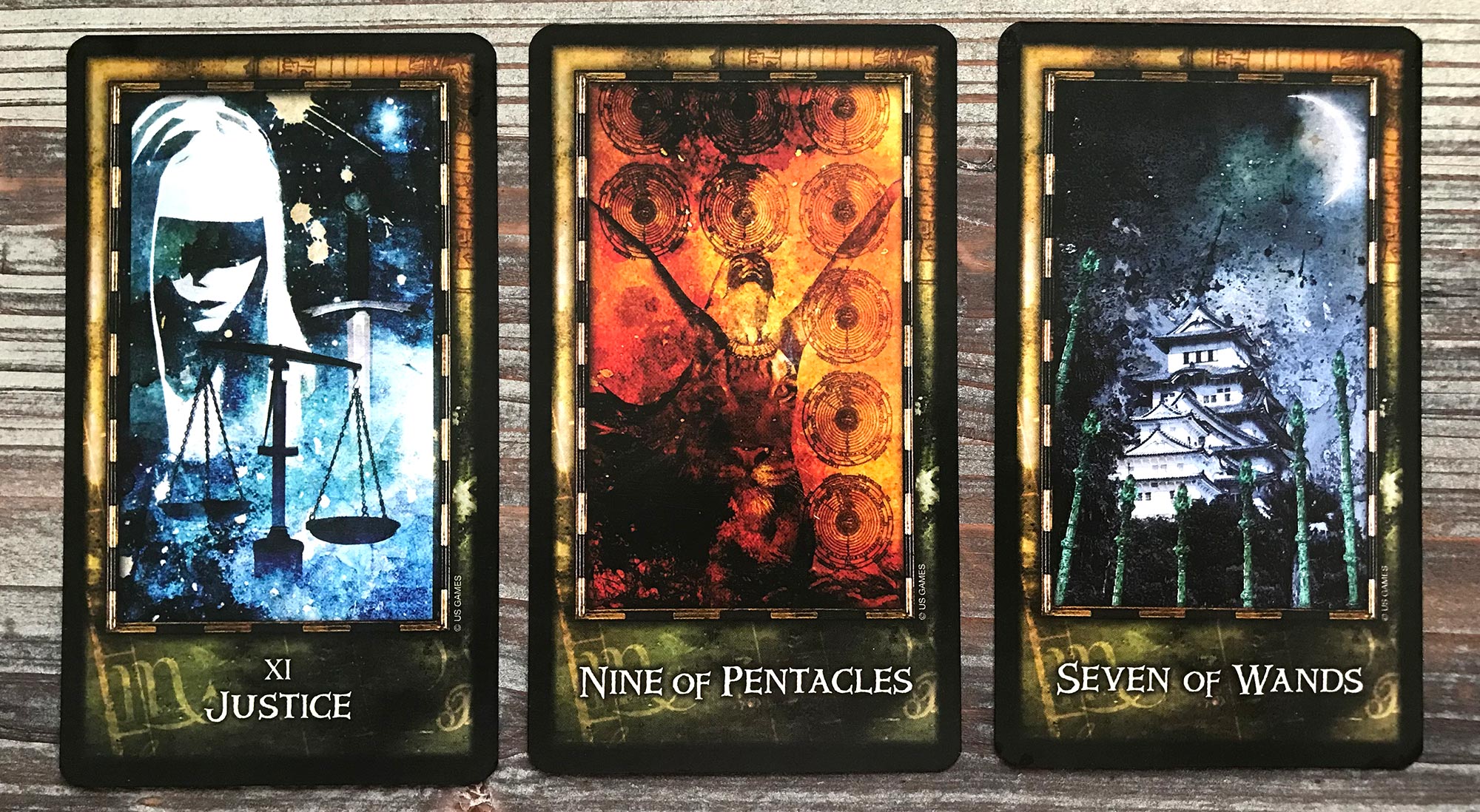 Reading Summary: Even with how much I have gone through in my life (Three of Swords), I continue to display gratitude and appreciation for all that I have (Nine of Pentacles) and possess the strength and clear-mindedness to lead by example (King of Swords).