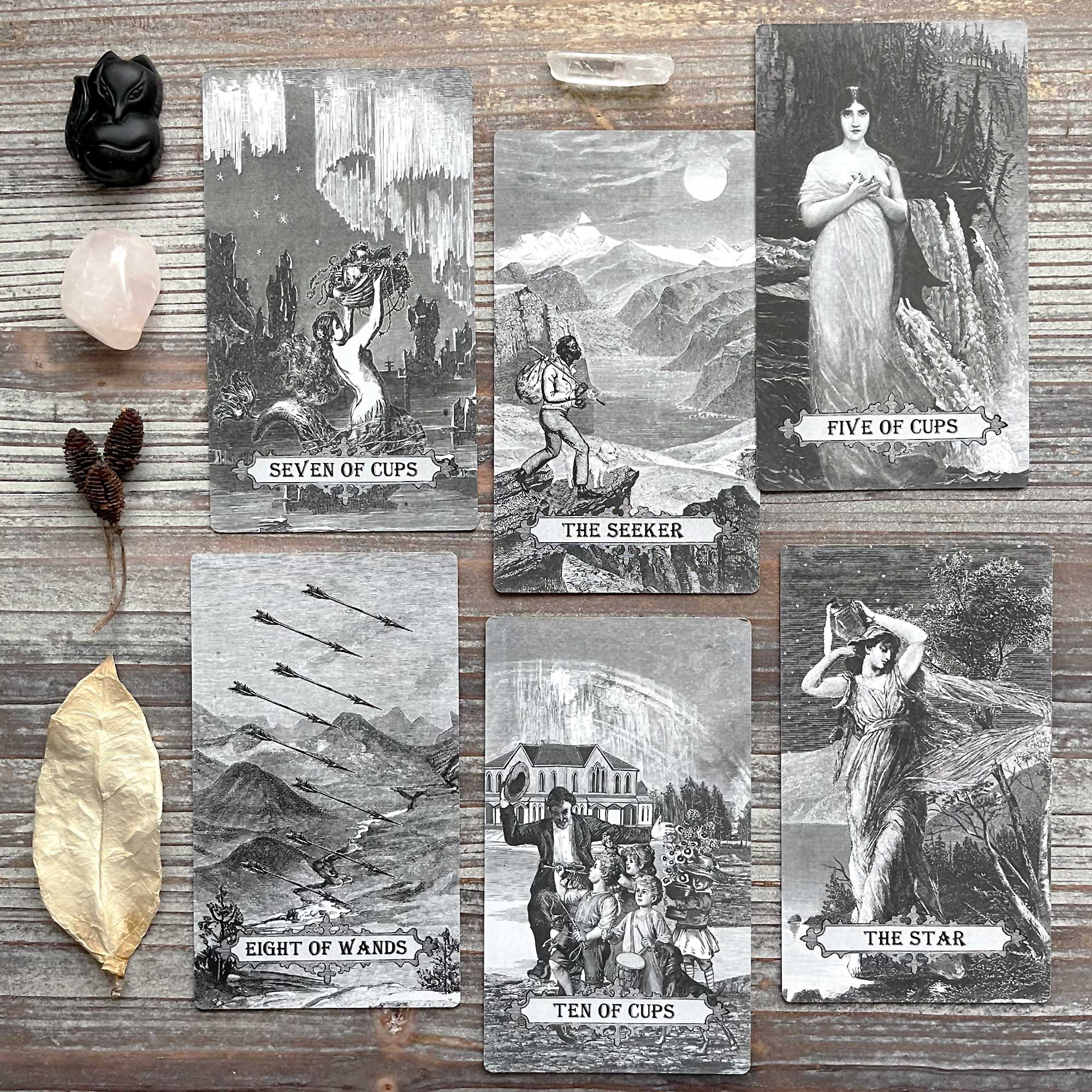 Reading Summary: You’re going to have to pick and choose (Seven of Cups) what you go after (The Seeker), and set the rest aside (Five of Cups).