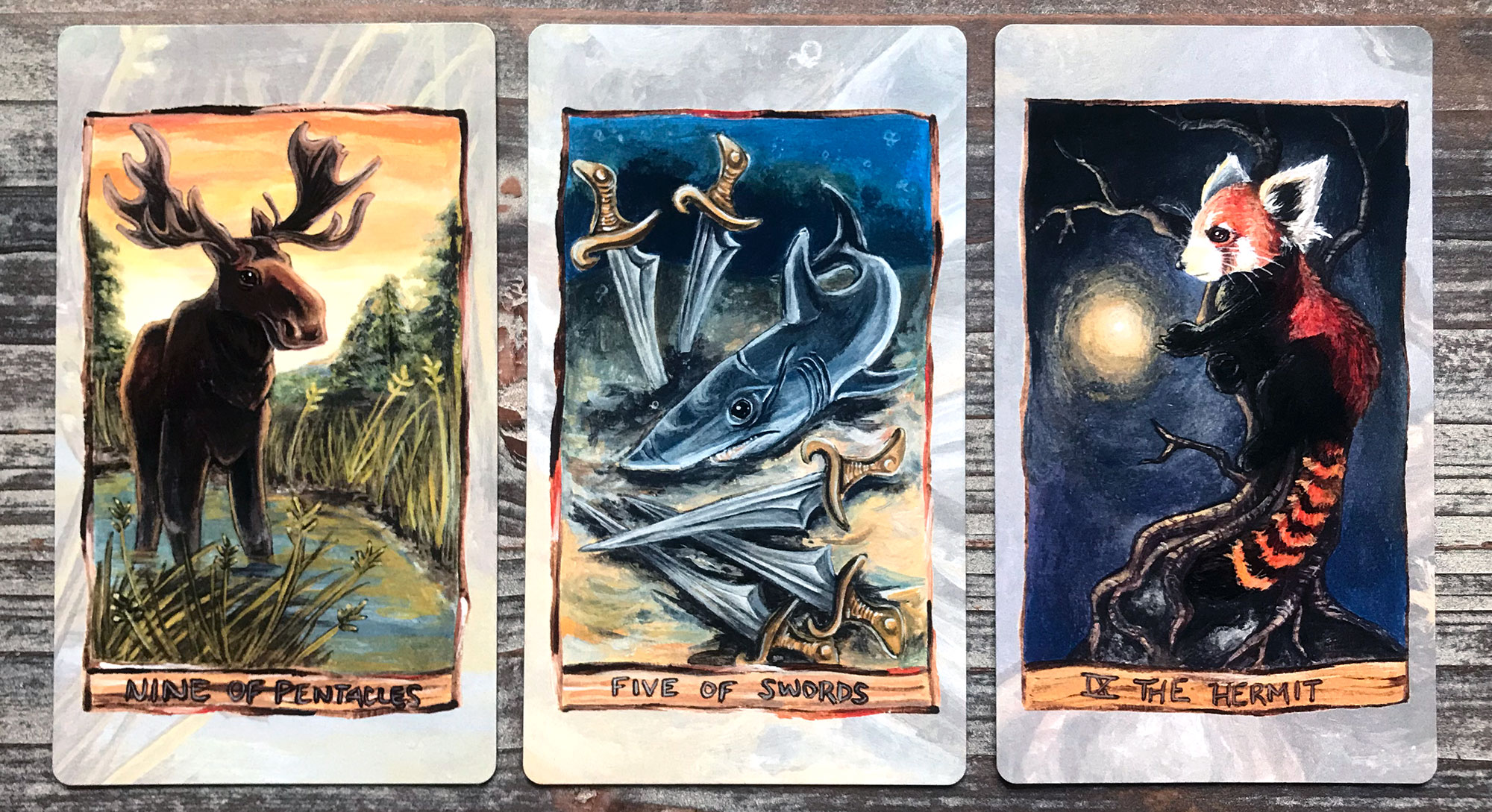 Reading Summary: Stay in touch with how you’re feeling (Knight of Cups) and own it (the curl of the Fox’s tail in the Queen of Wands), and understand that it is fully acceptable (Six of Wands) to need rest.