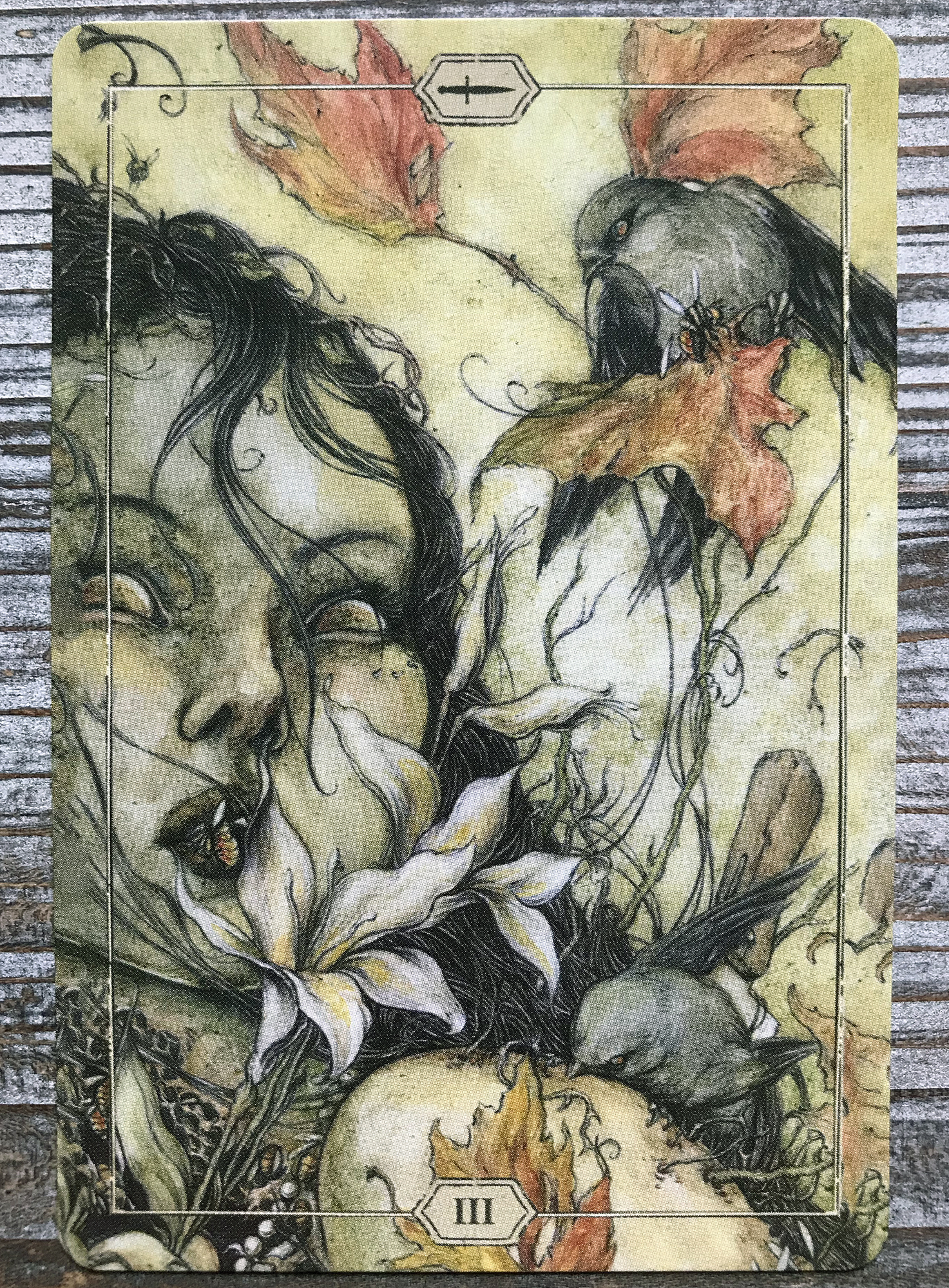 The message that I see in this card is about balance. Yes, it’s important to go after what you want, but do not become so focused upon the prize that you forget you are more than just a knight… you are also a vulnerable in a nightgown clinging to a unicorn. It’s okay to be soft. It’s okay to be gentle and vulnerable . It is possible to be both vulnerable… and strong.