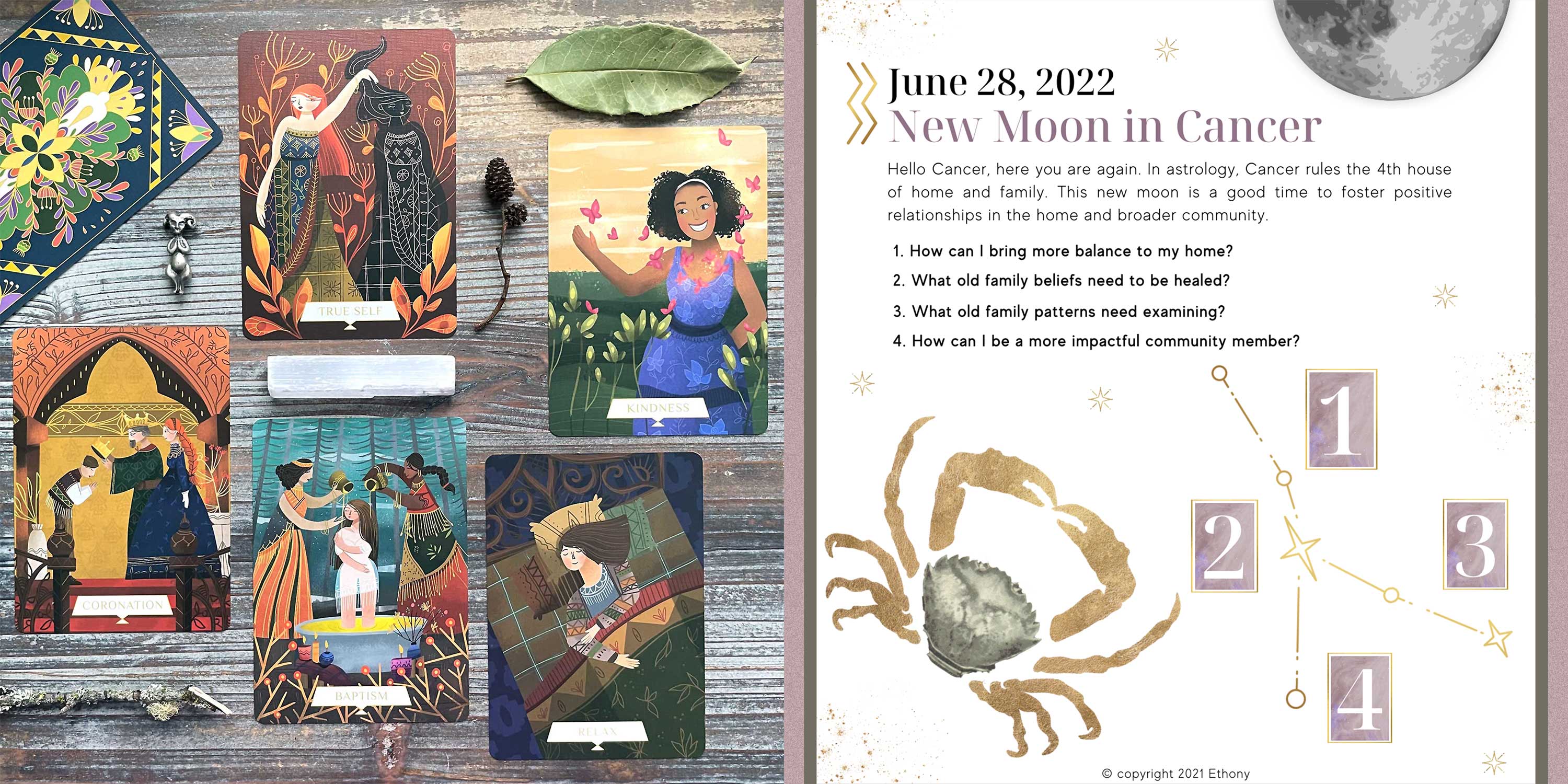 Tomorrow is the new moon, and like all new moons and full moons, I did a spread aligned to the moon’s current themes as a part of my recognition of the moon’s cycle and influences upon us. Today’s spread is courtesy of @lightningwildflower