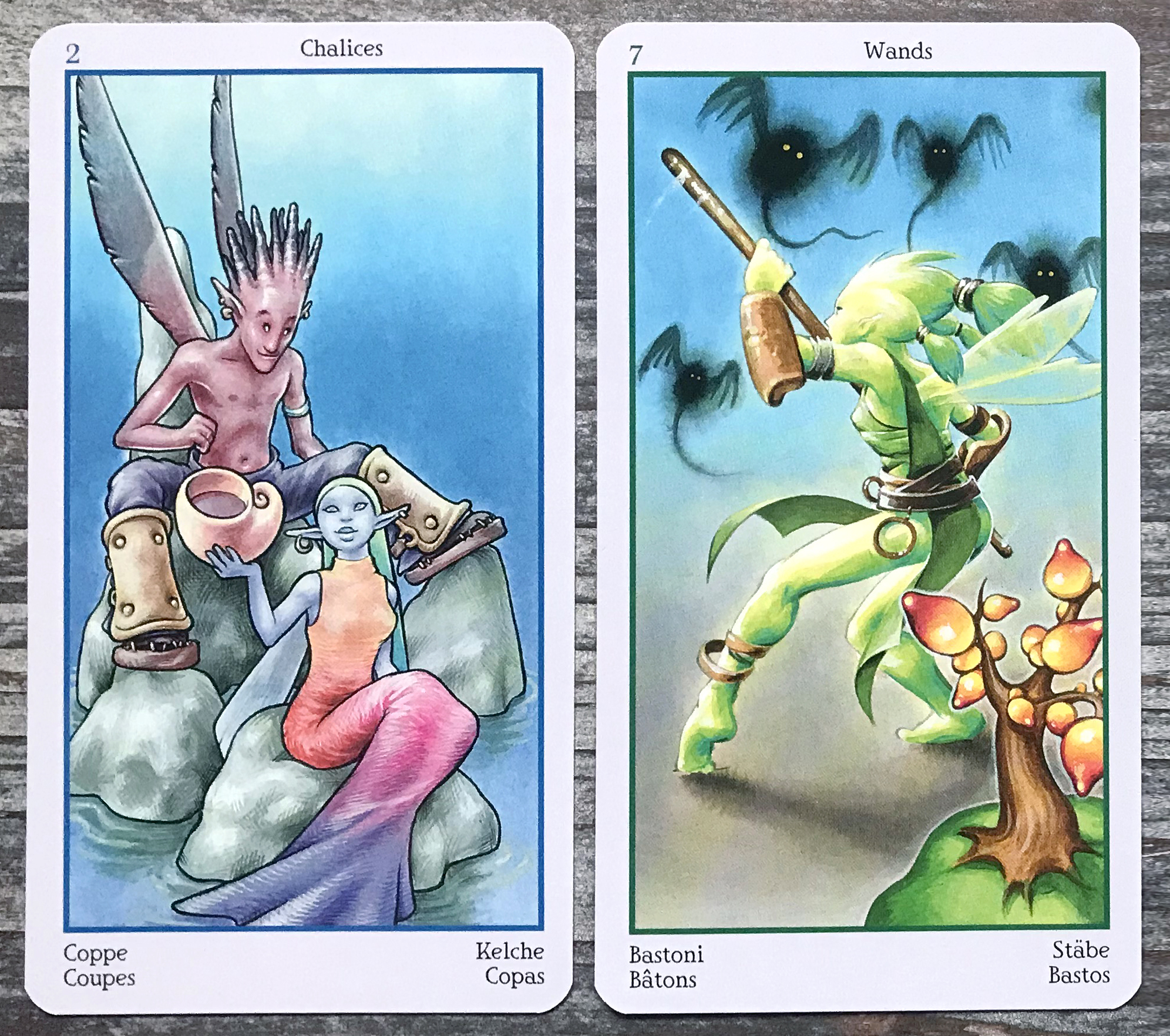I’ve always loved this card in a wide variety of decks. It’s one that I relate to greatly. What stands out the strongest in the imagery of this card today is the astronomical symbols on the blanket covering the woman in the image. Or rather, it’s the style of artwork that allows for some of those symbols to be so crisp and precise, and others to be blurred or indistinct.