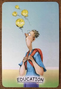 Today’s draw is the Page of Pentacles, which in this deck is titled as “Education”. The Page of Pentacles is a representation of a receptive omega energy, personality , or person in the area of resources, finances, manifestations, and the physical plane. It indicates the beginning of a new cycle upon a path that you already tread.