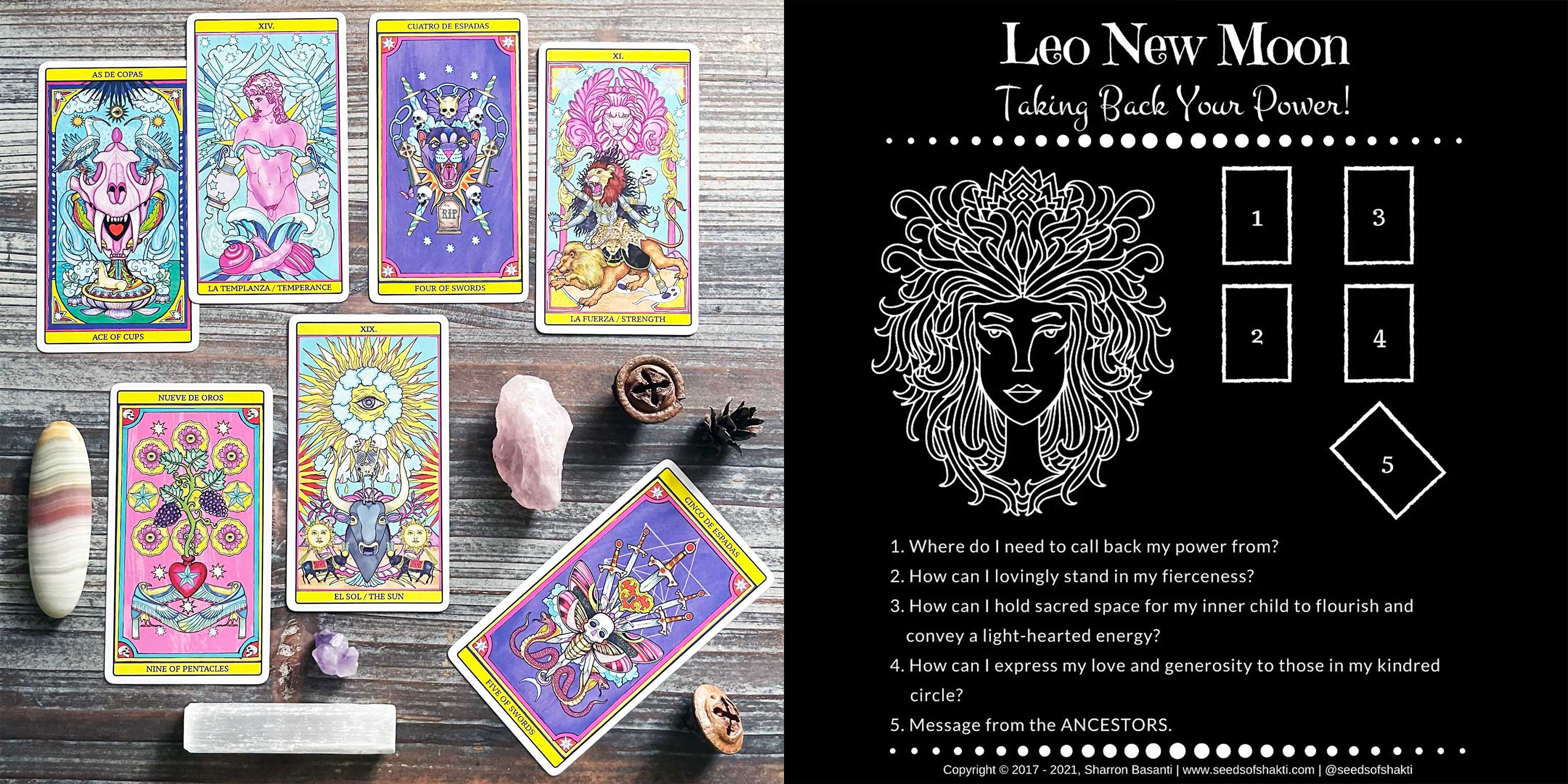 Coming up on Friday is the Full Moon! I’m a bit early, but like all new moons and full moons, I did a spread aligned to the moon’s current themes as a part of my recognition of the moon’s cycle and influences upon us. Today’s spread is about being rooted in prosperity, and brought to you by Sharron Basanti of Seeds of Shakti.