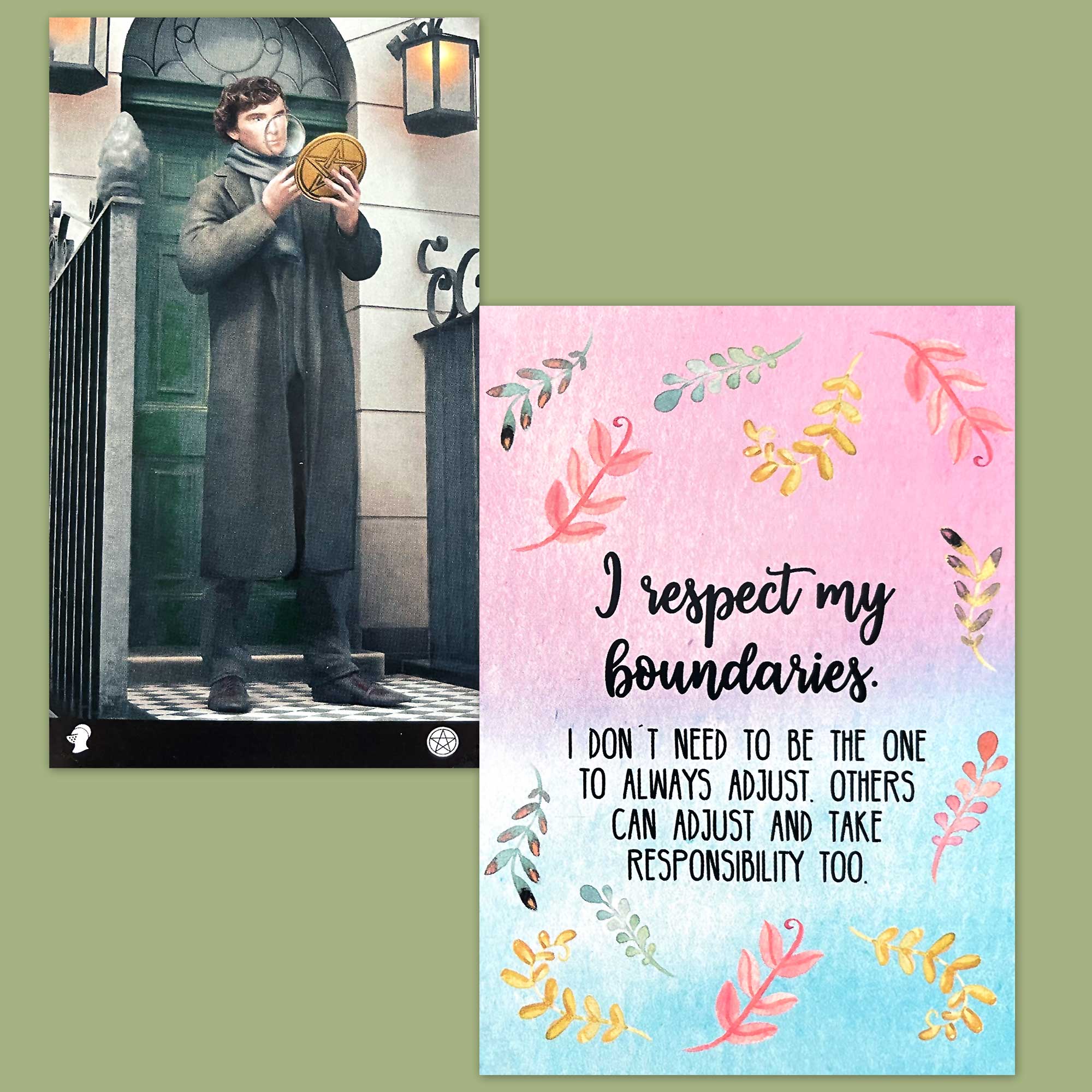 I am often quite rigid in my boundaries as a good majority of them are set by my moral compass … but not all. The message within these two cards combined is that it’s important to look at your boundaries and make sure that they have value and are working for you.