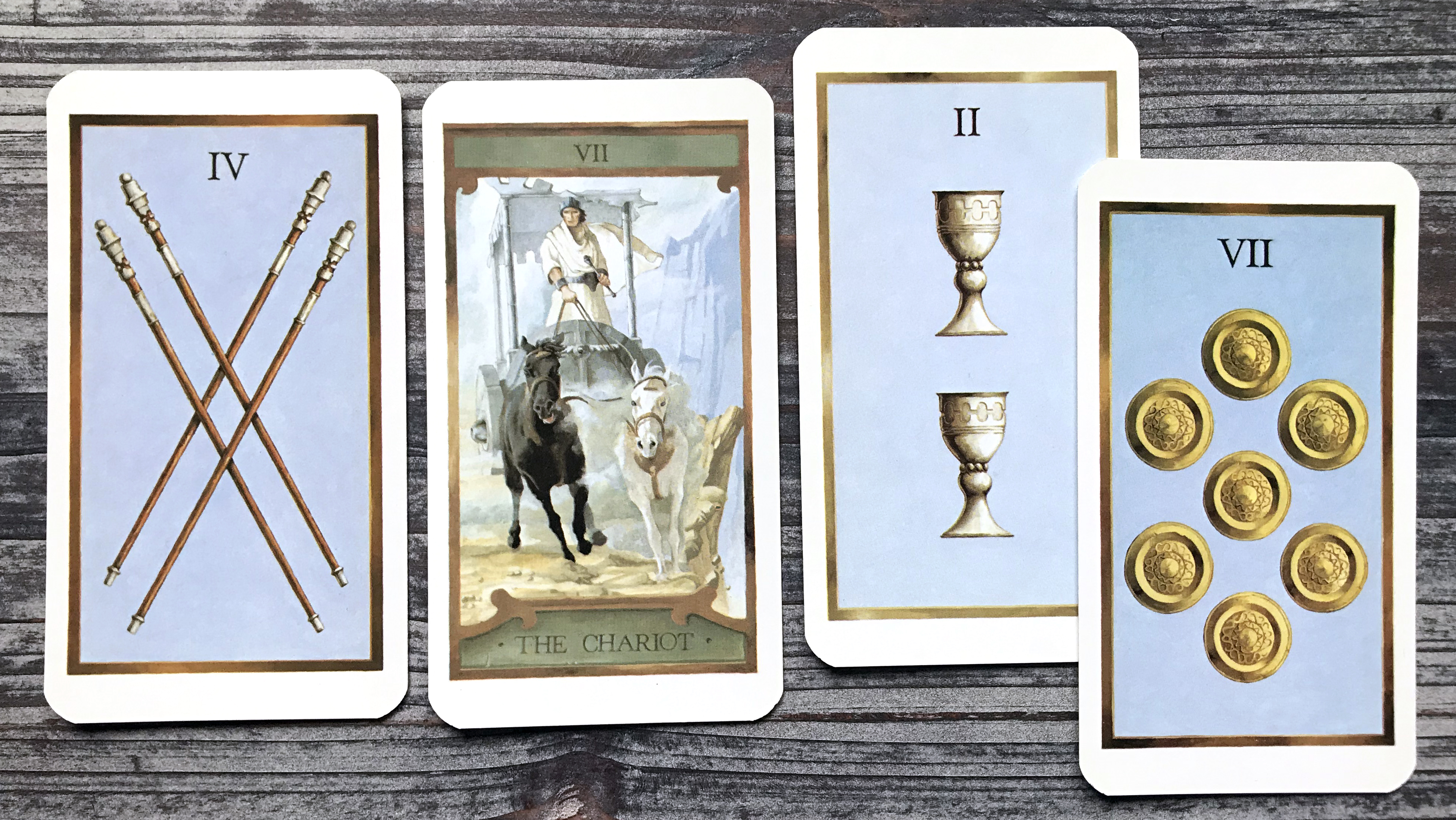 The cards indicate (much as a different reading on the same subject a couple months ago indicated) that it’s going to be a long road and take a lot of time and determination. I can and will “get there”, but it’s going to take dedication and I need to watch out for pitfalls and road blocks along the way that could end up distracting me from my goal if I let them.
