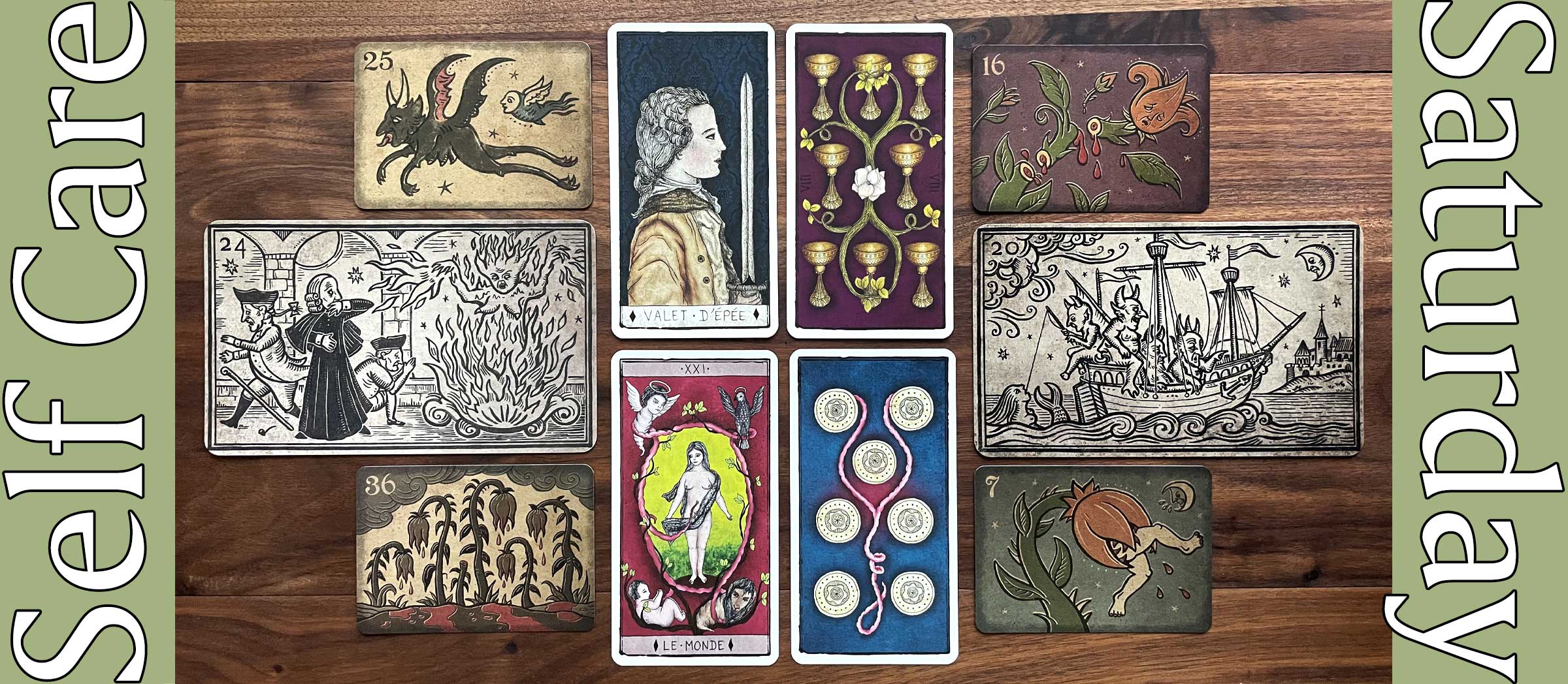 It’s a tie between the Ritual Abuse Tarot and the Tarocchi di Connessione. A lot of people like lighter and brighter decks for their shadow work, but I find that I require something that gives a bit of a punch and can wring out my insides. Both of these decks have that in common.