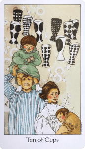 Today’s draw is the Ten of Cups, which is a representation of endings and transcendence (and occasionally excess) in the areas of emotions, creativity, relationships, and imagination.