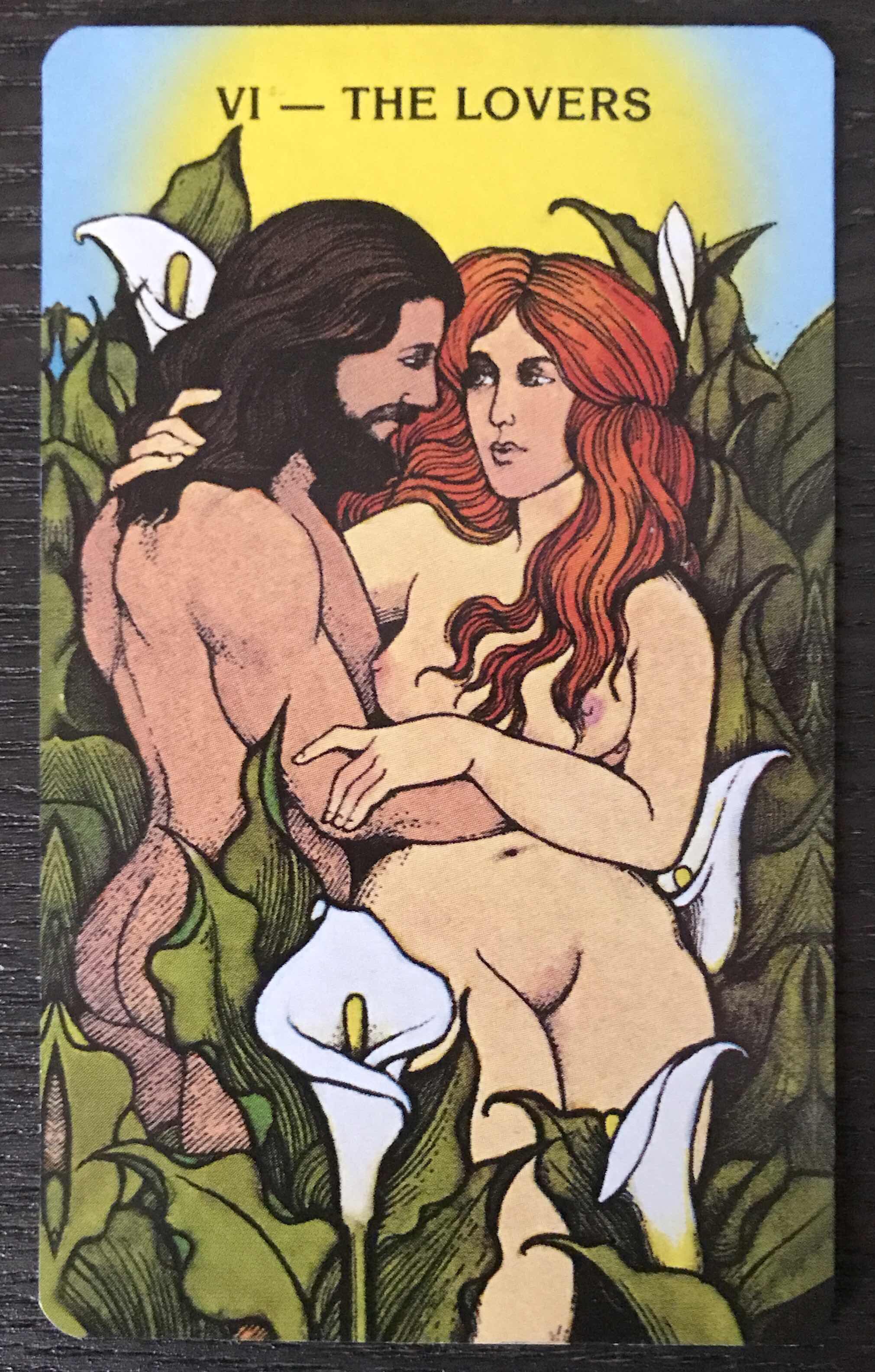 Today’s card is the Lovers card, which contrary to novice perceptions has very little to do with romance and a whole lot to do with choices the choices we make and have made (in my experience). More specifically, because this is a Major Arcana card, to deal with life-path choices.