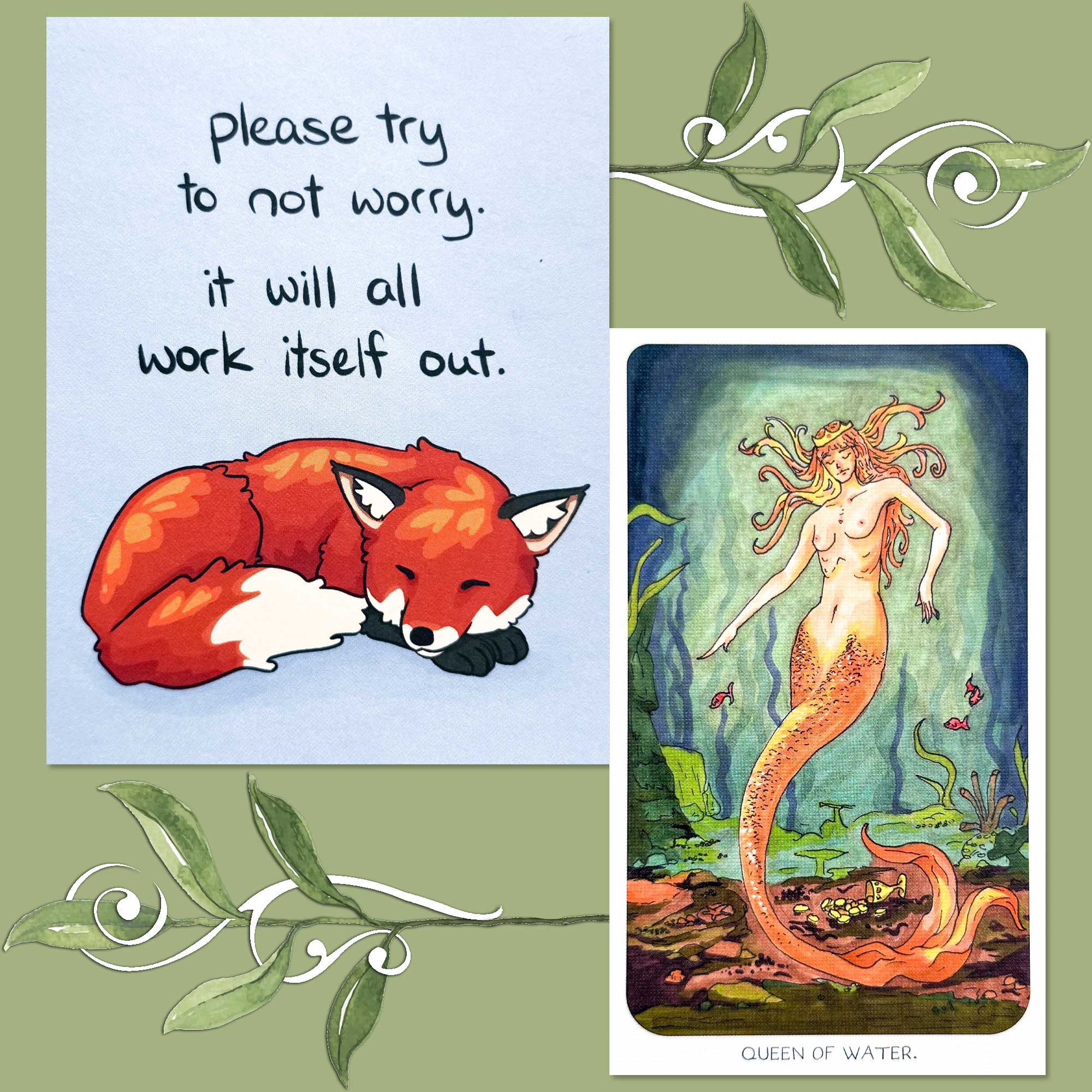 Journey Tarot Deck's Queen of Water (Queen of Cups)and It’s Going To Be Okay 2024 Day-to-day Calendar By Kate AllanToday’s draw is the Queen of Cups combined with the affirmation “Please try not to worry. It will all work itself out.”