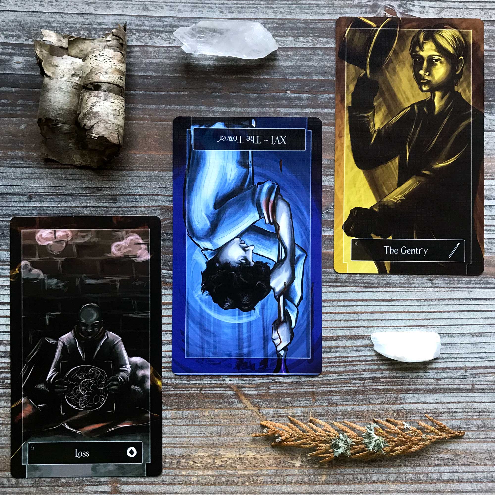 Reading Summary: When you’re feeling lost (Five of Pentacles) and internally chaotic (The Tower Rx), your friends are there to help point the way and lead you forward (King of Wands).