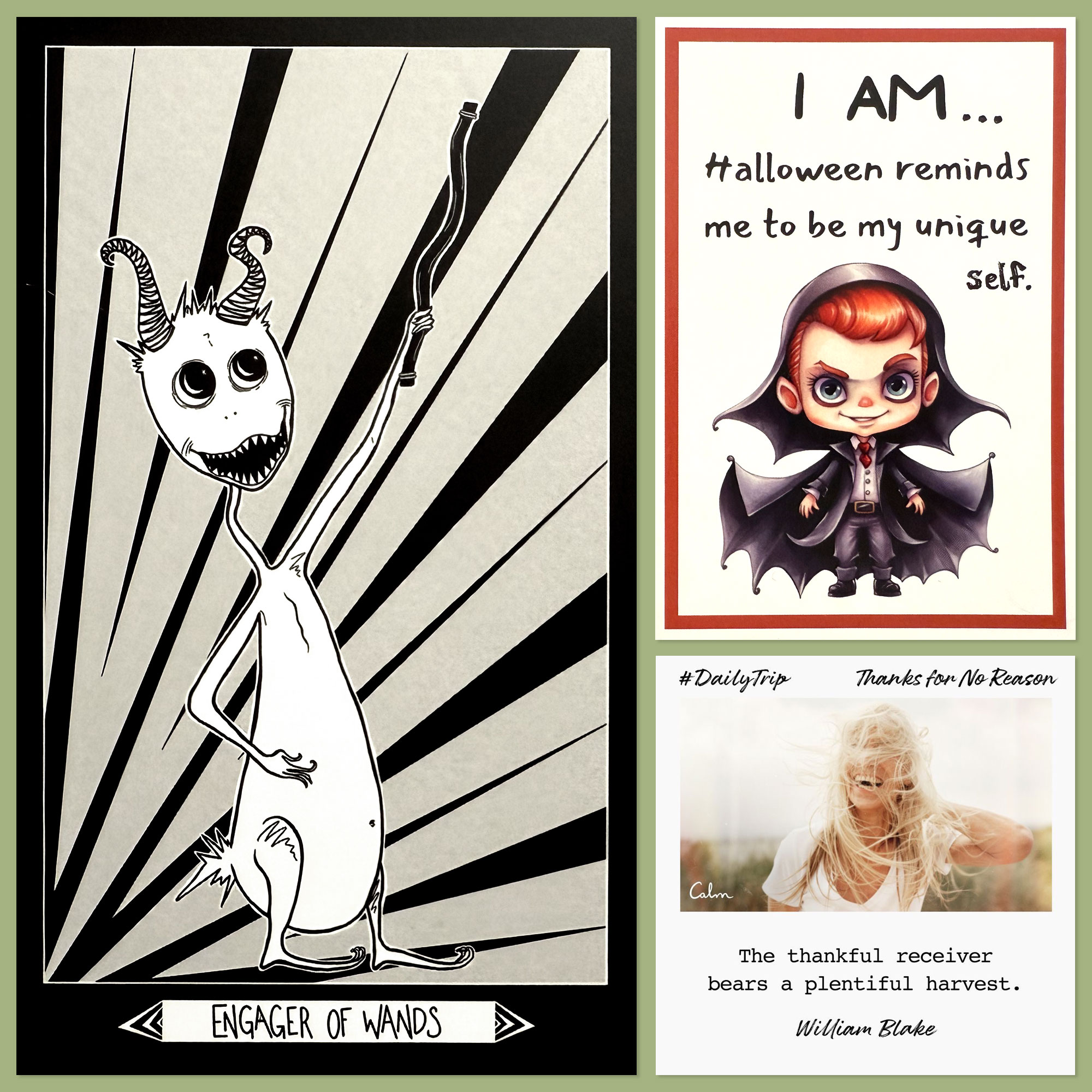 The Knight of Wands has then been combined with a Halloween Affirmation card that says, “Halloween reminds me to be my unique self.”