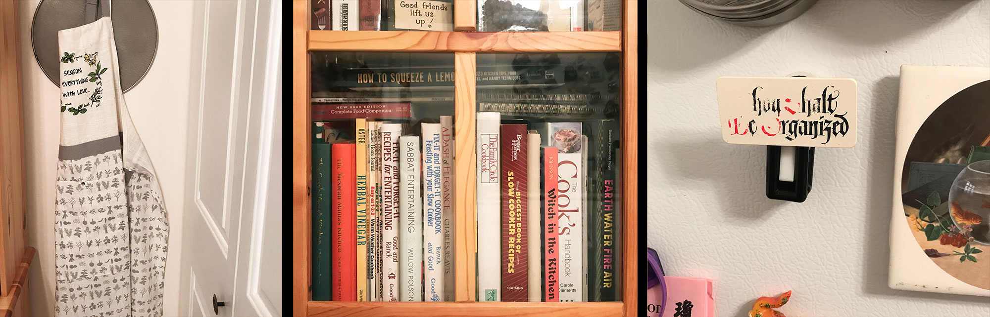 As a side note about the kitchen… In many traditions there is a superstition that tools used in worship and spellcraft can never again return to being used for mundane tasks. I personally do not subscribe to this belief. My home is a sacred space, my life aligns with my faith in not just that I do in a daily devotional or occasional rituals, but is sprinkled throughout my life (and home) in all sorts of small ways. It is not something put in a box only to be pulled out for certain things or occasions, but instead is a part of everyday life, and integrated into every nook and cranny.
