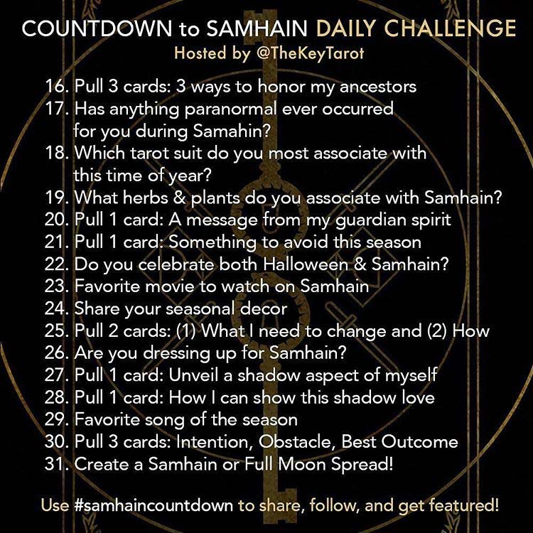 I discovered this little challenge on Instagram and thought I’d give it a go.  Since it’s not demanding a card pull each day, I thought it might be fun to use it for a couple of my Pagan’s Perspective posts instead of adding it to my daily rotations.