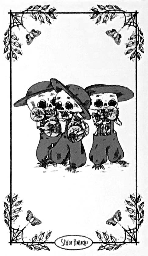 SkeleTarot - Six of Pentacles12 The Ghost of Samhain Future is represented by the Six of Pentacles. As a card of generosity and economic balance, it’s appearance as the card of the Ghost of Samhain Future indicates that in riding out this change and using this time to find my grounding and my path, my balance and a better way forward, that the future ahead looks bright.  Allowing for balance to take hold and the ability to sustain and flourish with this new way of doing things not just possible but absolutely probable.  This card indicates that there is no need to worry about if I’m going to find a new balance that is healthier and more sustainable.  It’s not just possible… but the most probable outcome looking at the trajectory forward.