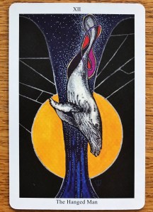 Today’s draw is the Hanged Man, which is also apropos for this morning’s activities. Although in this case it is me showing others a different perspective than taking one myself. There is a part of the Hanged Man’s interpretation that has to do with criminal behavior and payment as well, which is also appropriate.